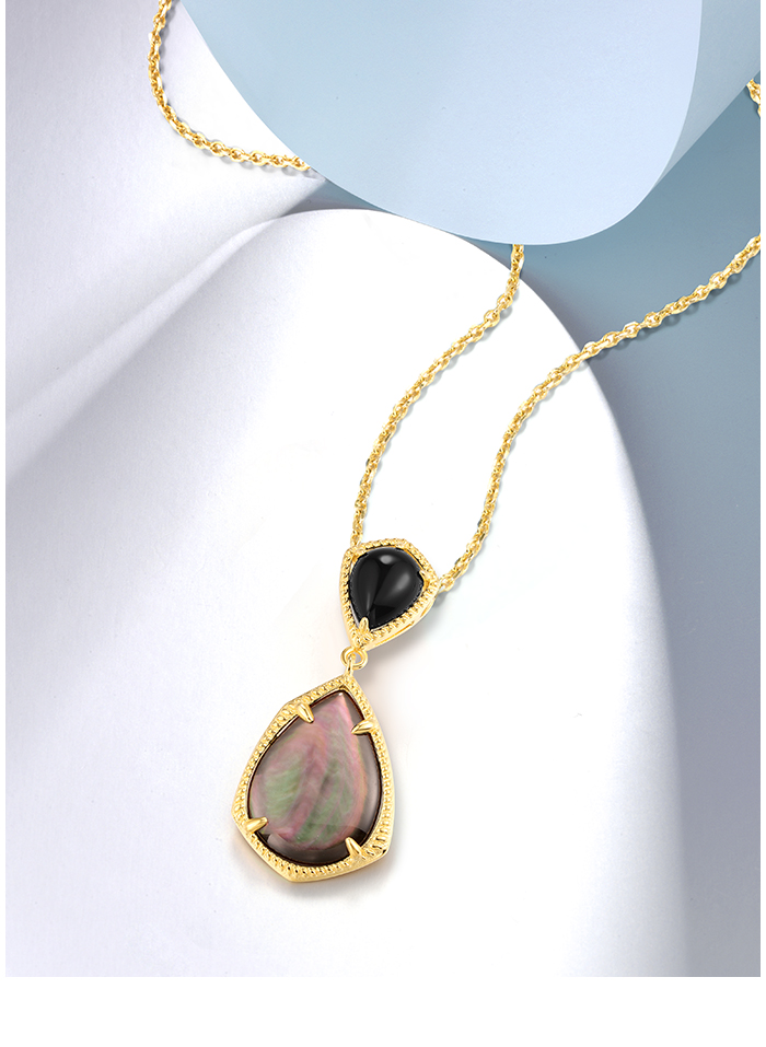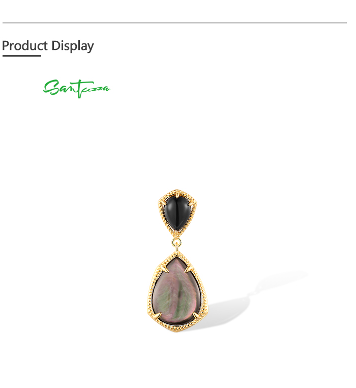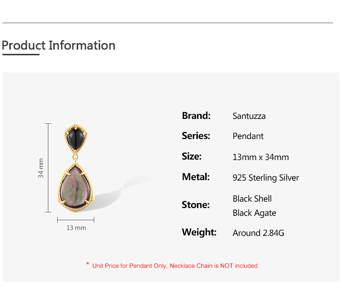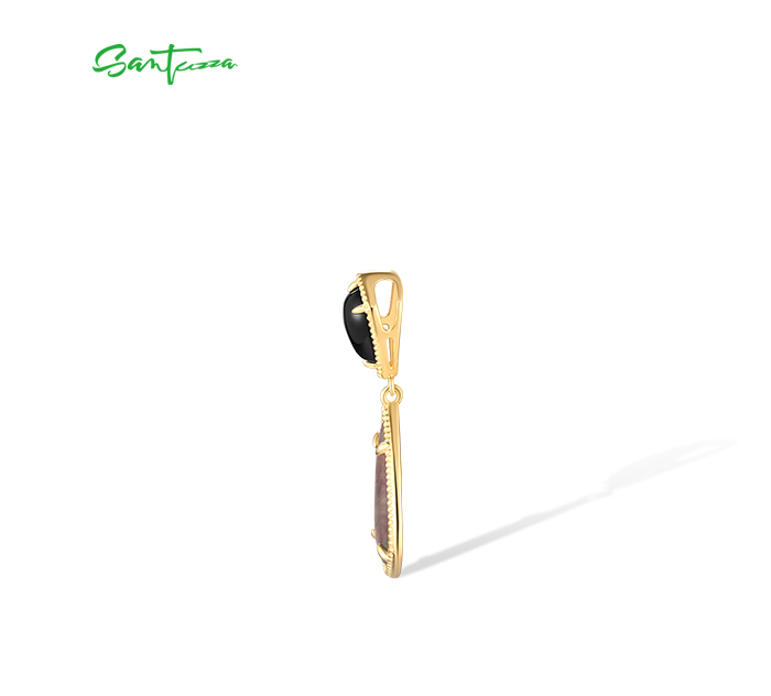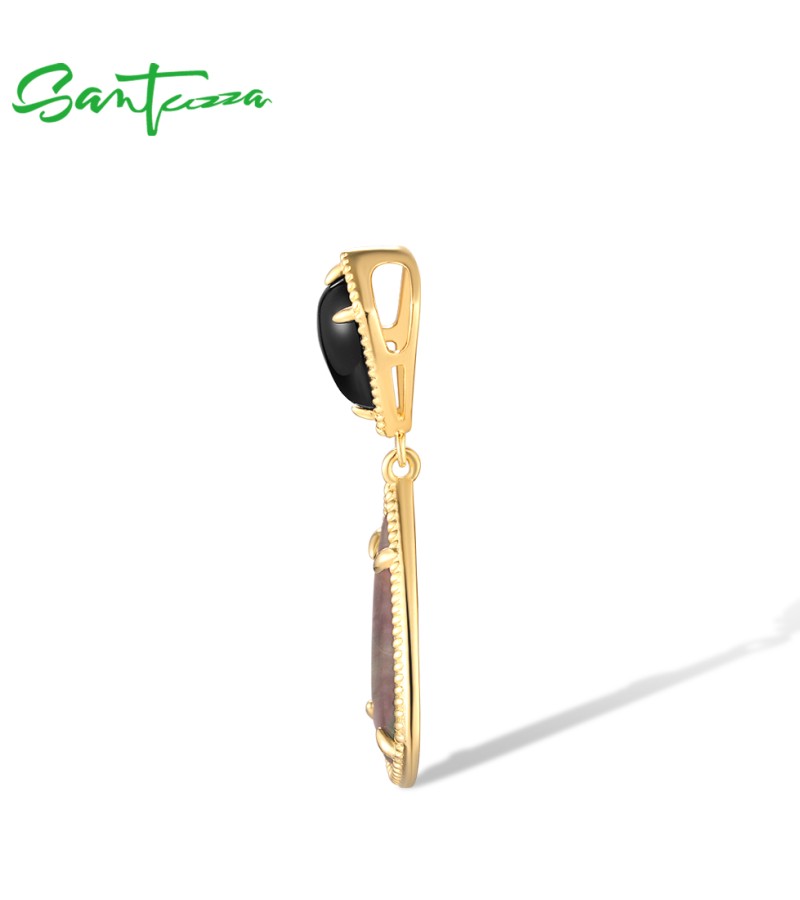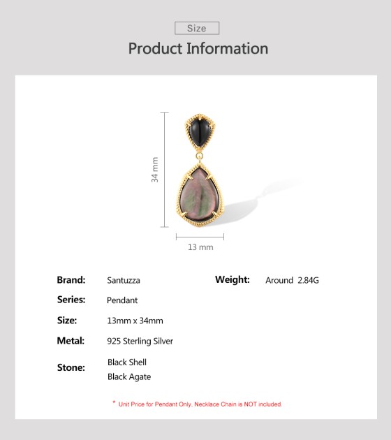 SANTUZZA 925 Sterling Silver Pendant Sparkling Black Agate&Shell Jewelry
