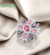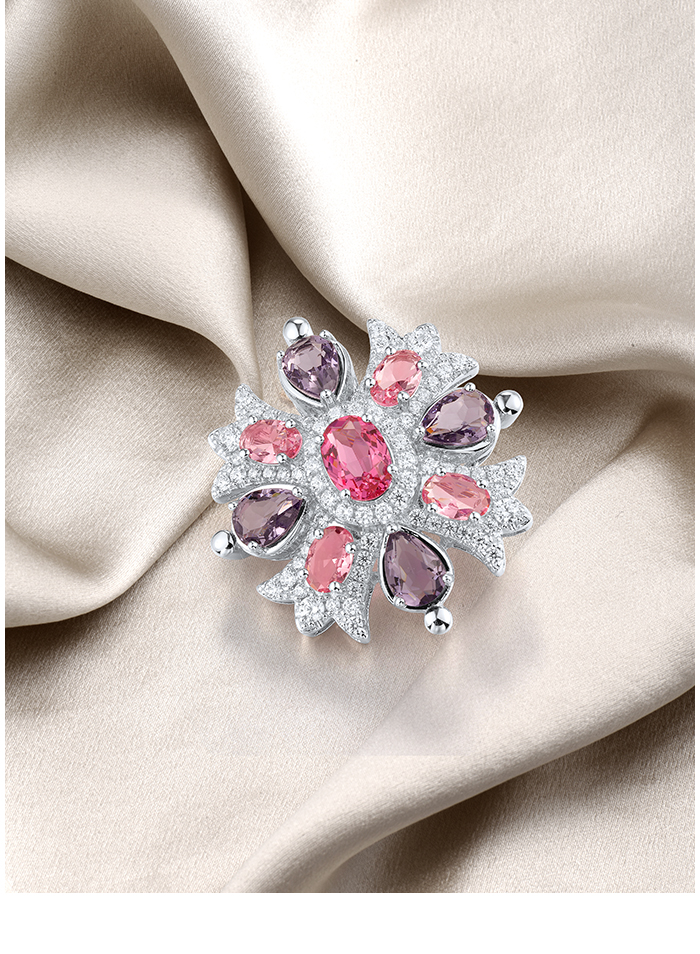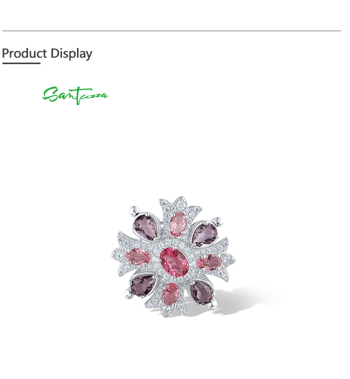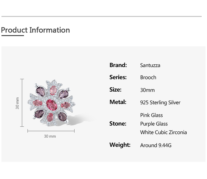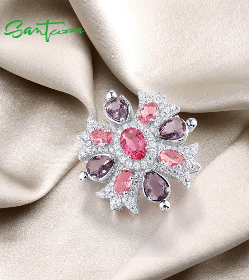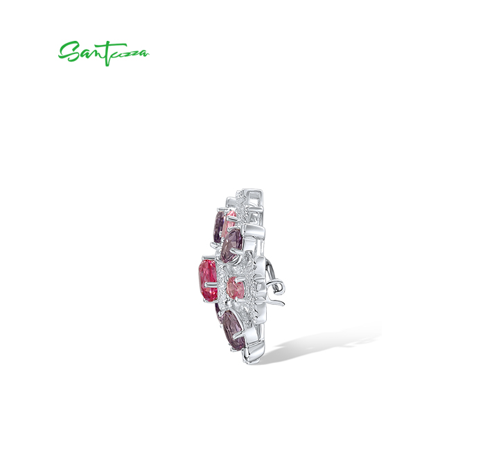 SANTUZZA 925 Silver Brooch Sparkling White CZ Red Purple Stone Jewelry