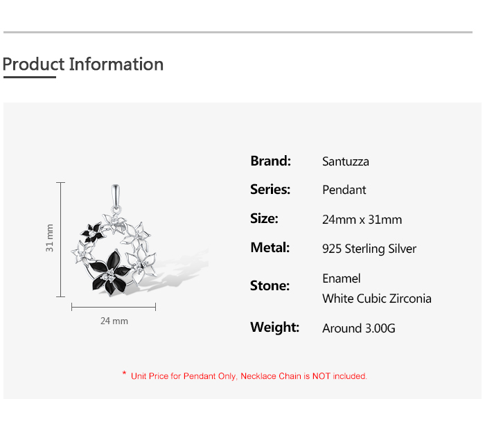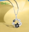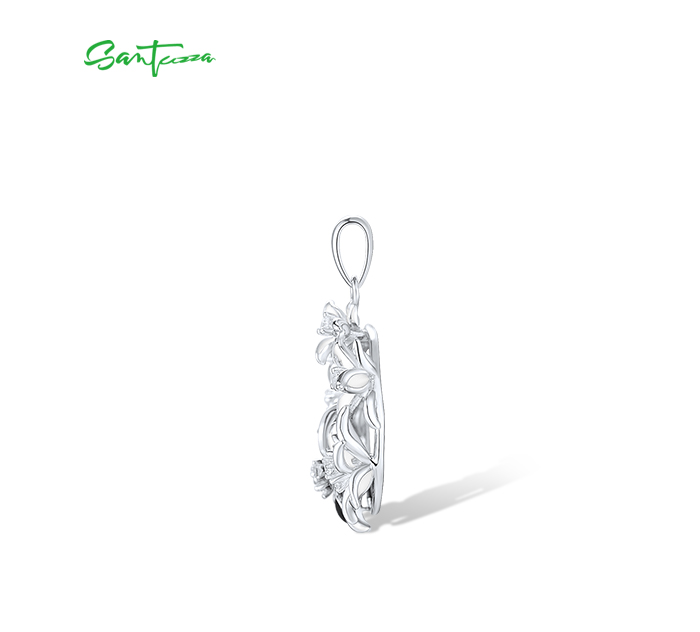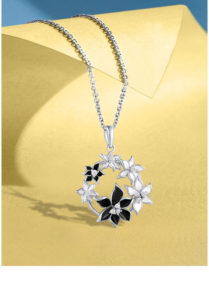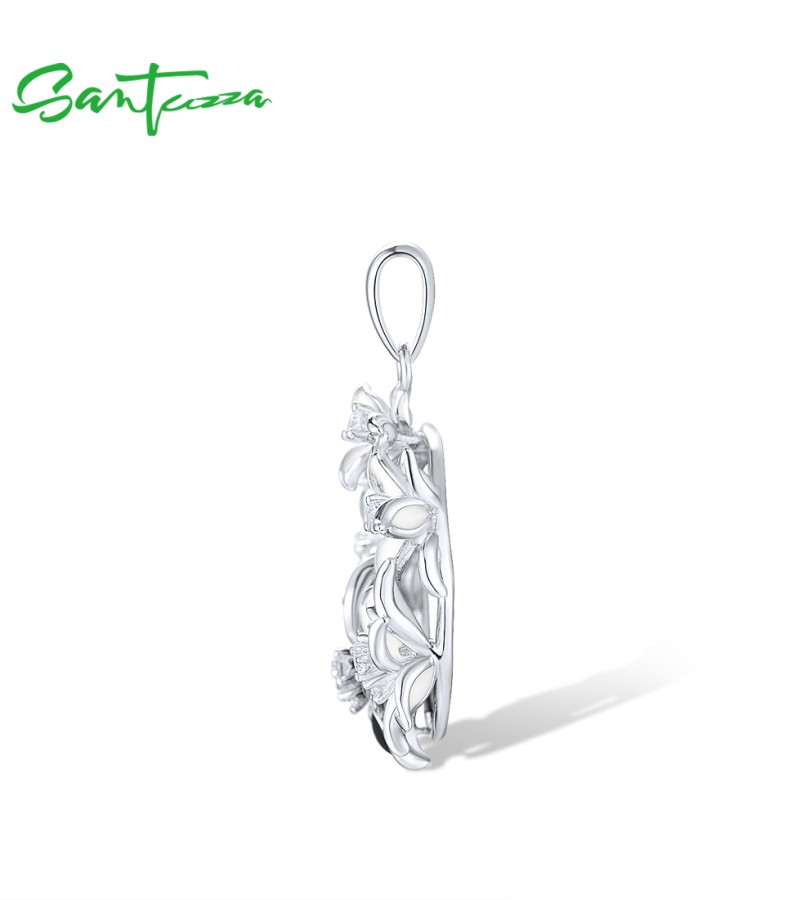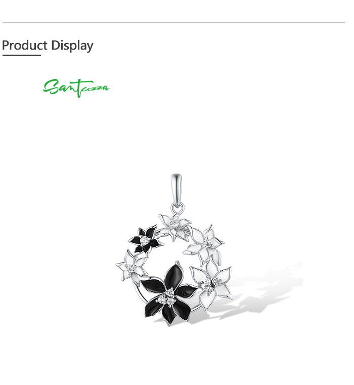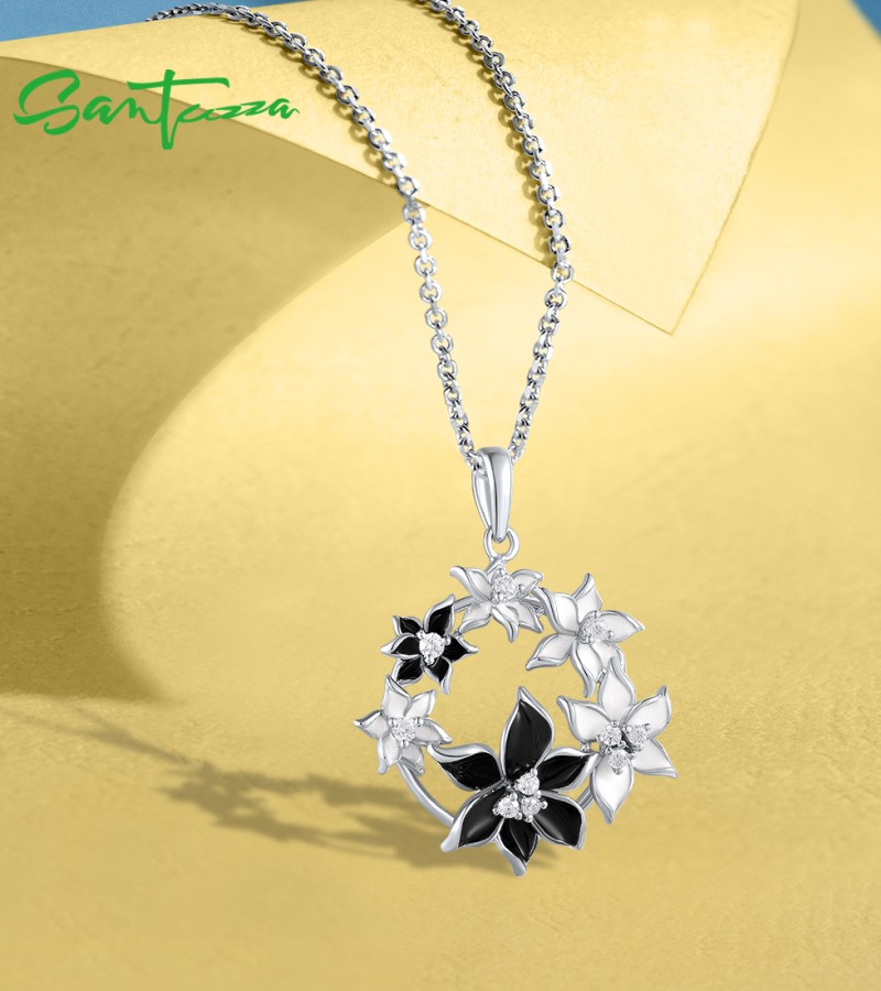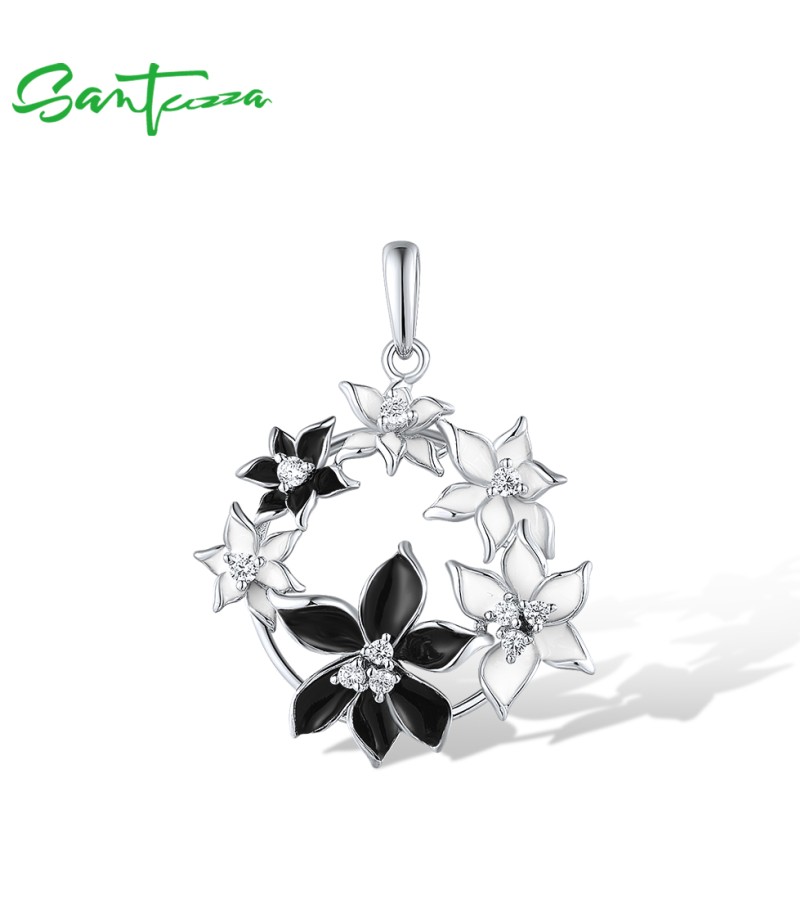 SANTUZZA 925 Sterling Silver Pendant Sparkling Black & White Flower Jewelry