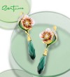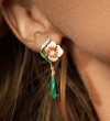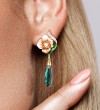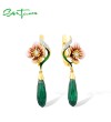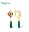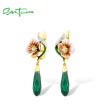 SANTUZZA 925 Sterling Silver Earrings Green &White Cubic Zirconia Delicate Flower Jewelry