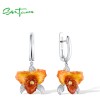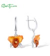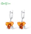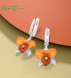 SANTUZZA 925 Sterling Silver Earrings Orange Orchid Enamel Flower Elegant Flower Jewelry