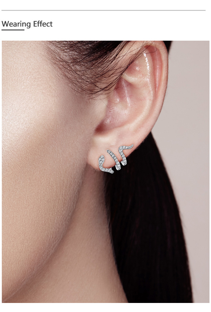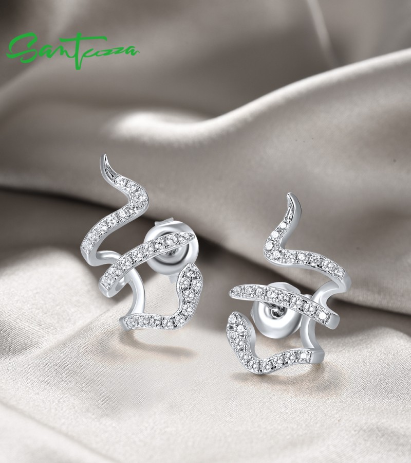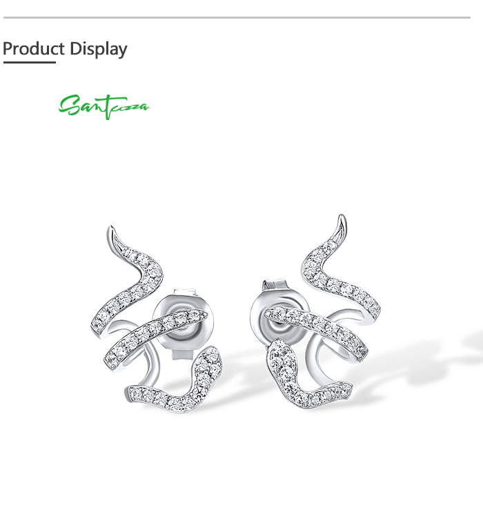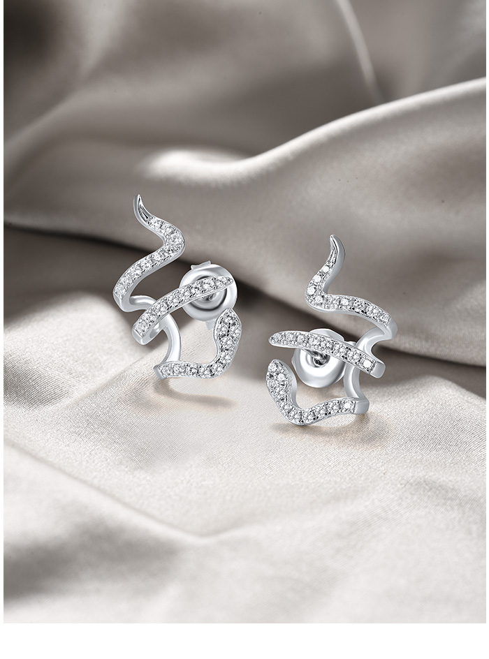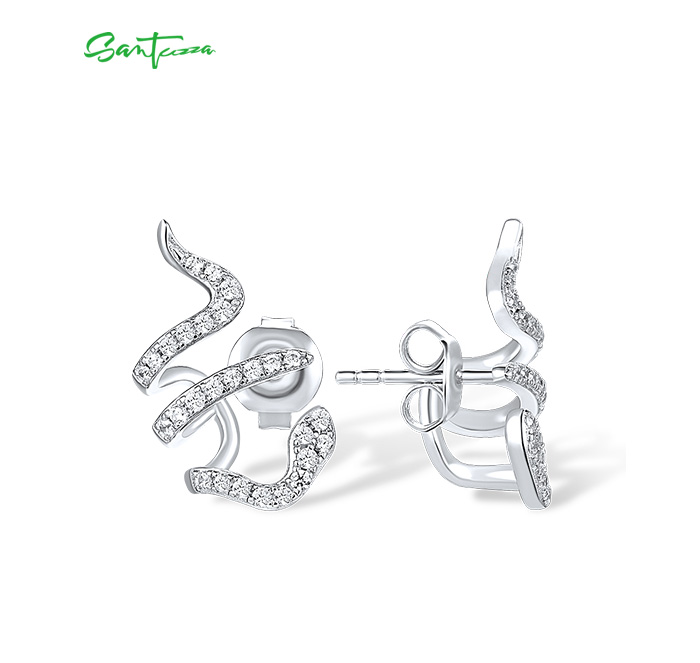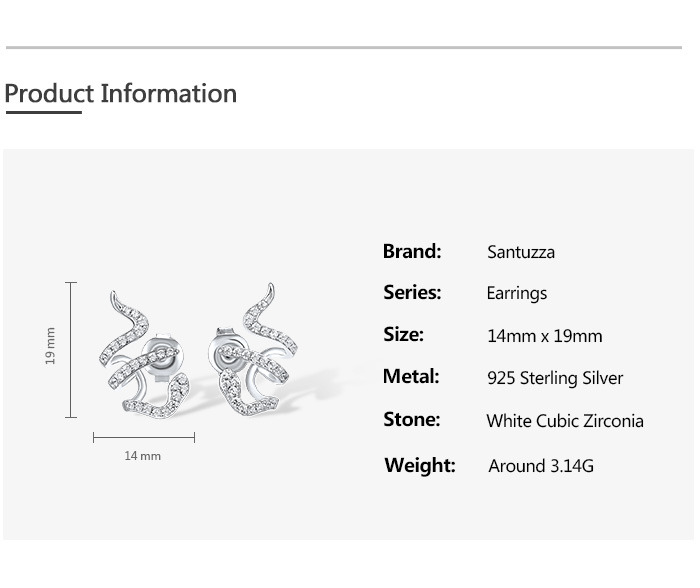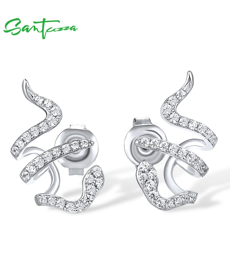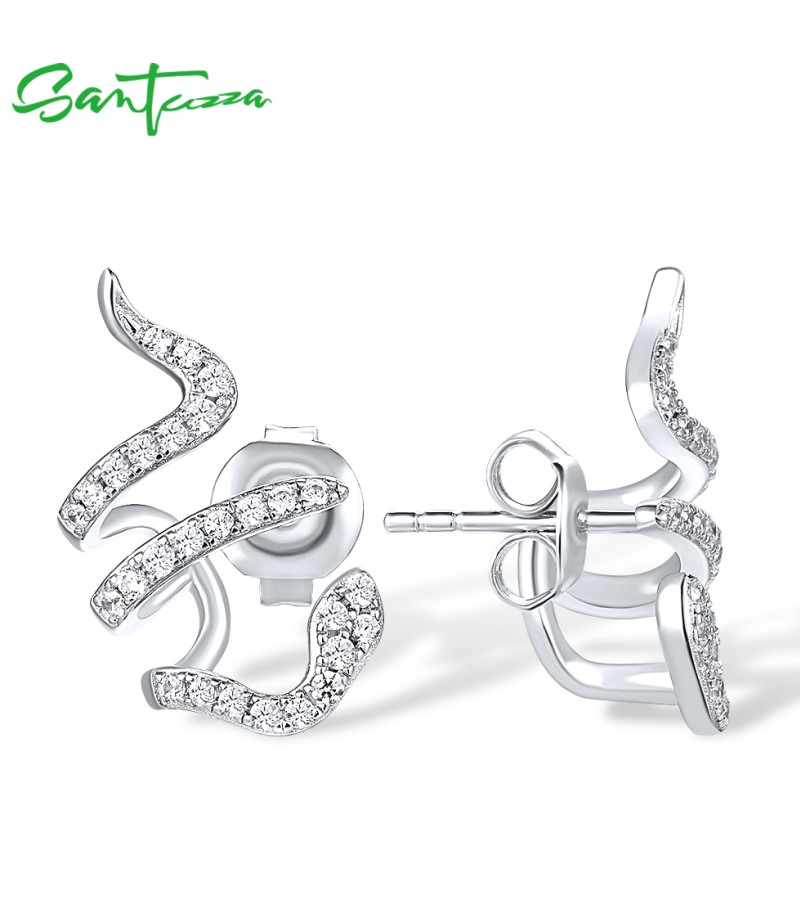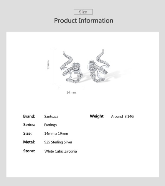 SANTUZZA 925 Sterling Silver Stud Earrings Sparkling White Cubic Zirconia Snake Jewelry