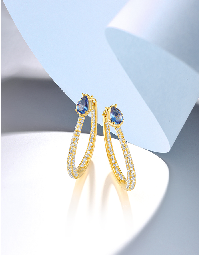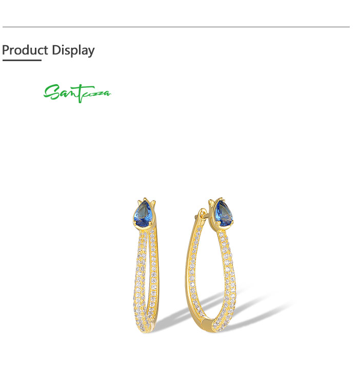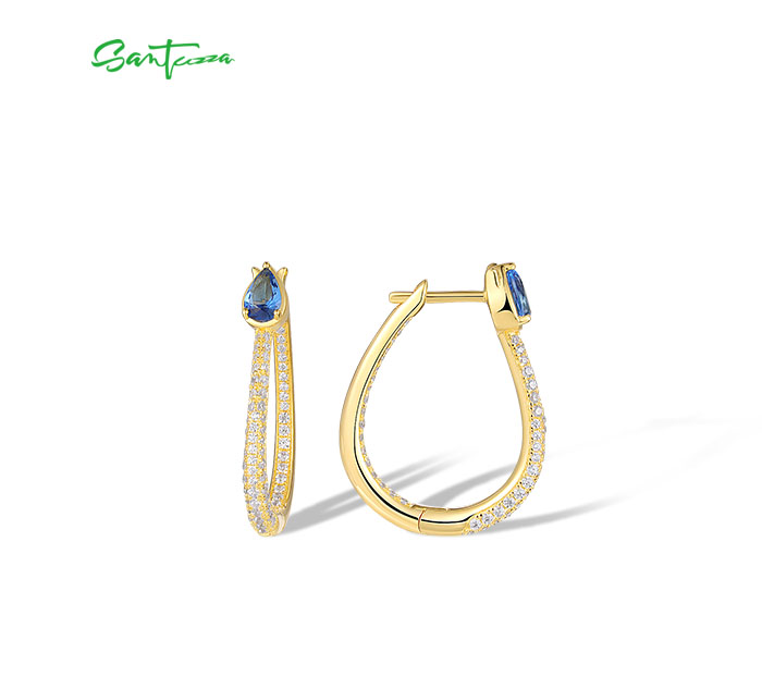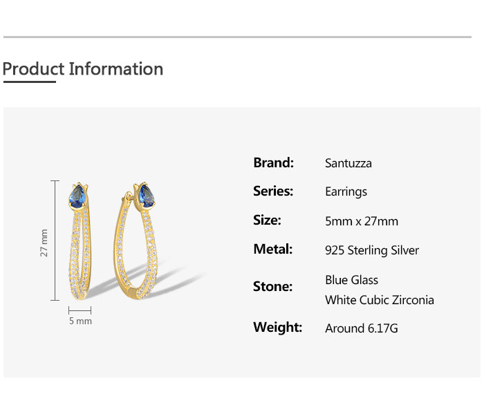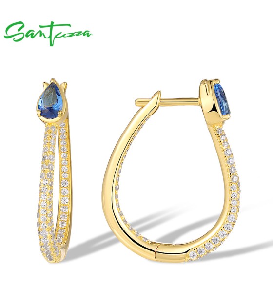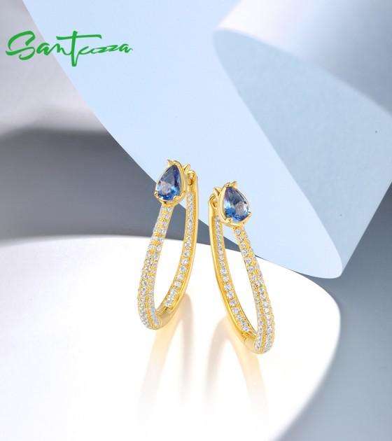 SANTUZZA 925 Sterling Silver Loop Earrings Sparkling White CZ Blue Spinel Jewelry