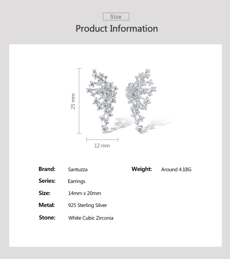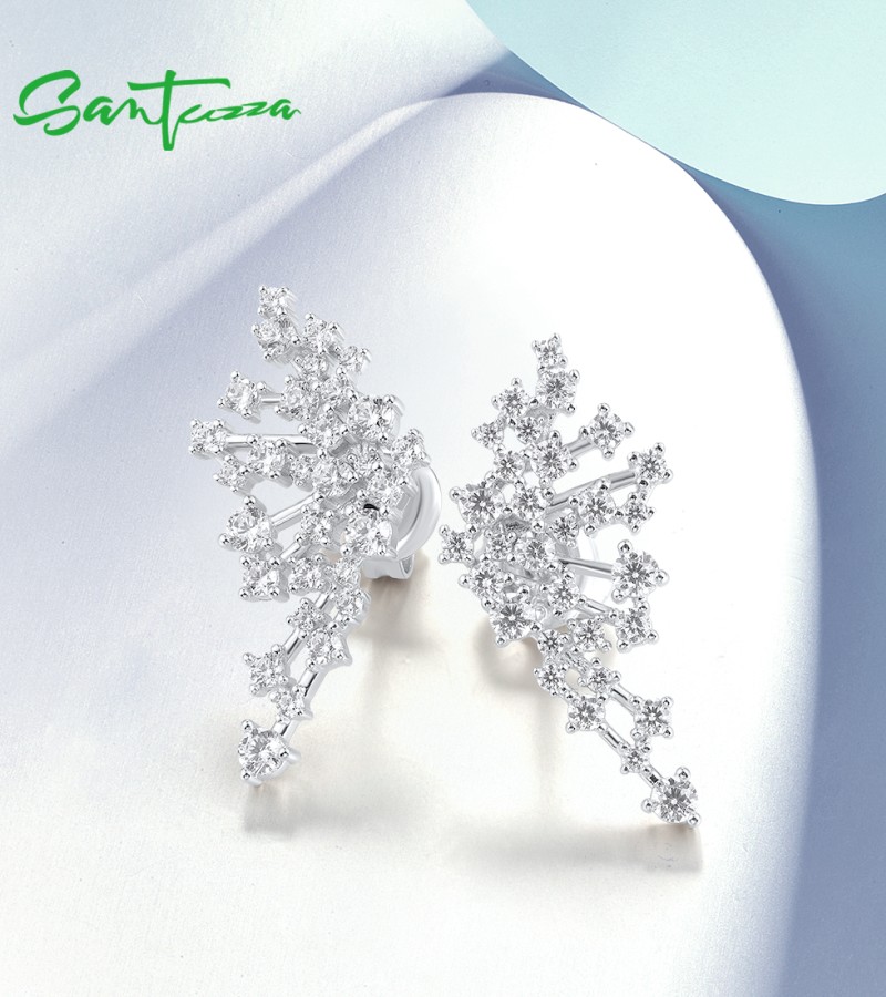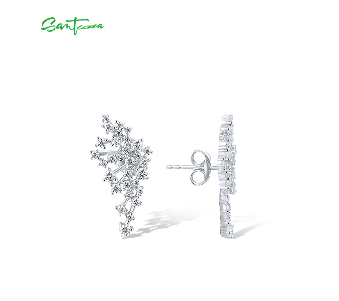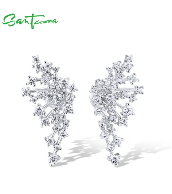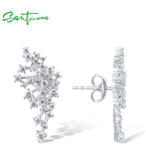 SANTUZZA 925 Sterling Silver Stud Earrings Sparkling White CZ Fashion Jewelry