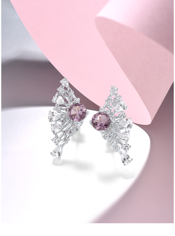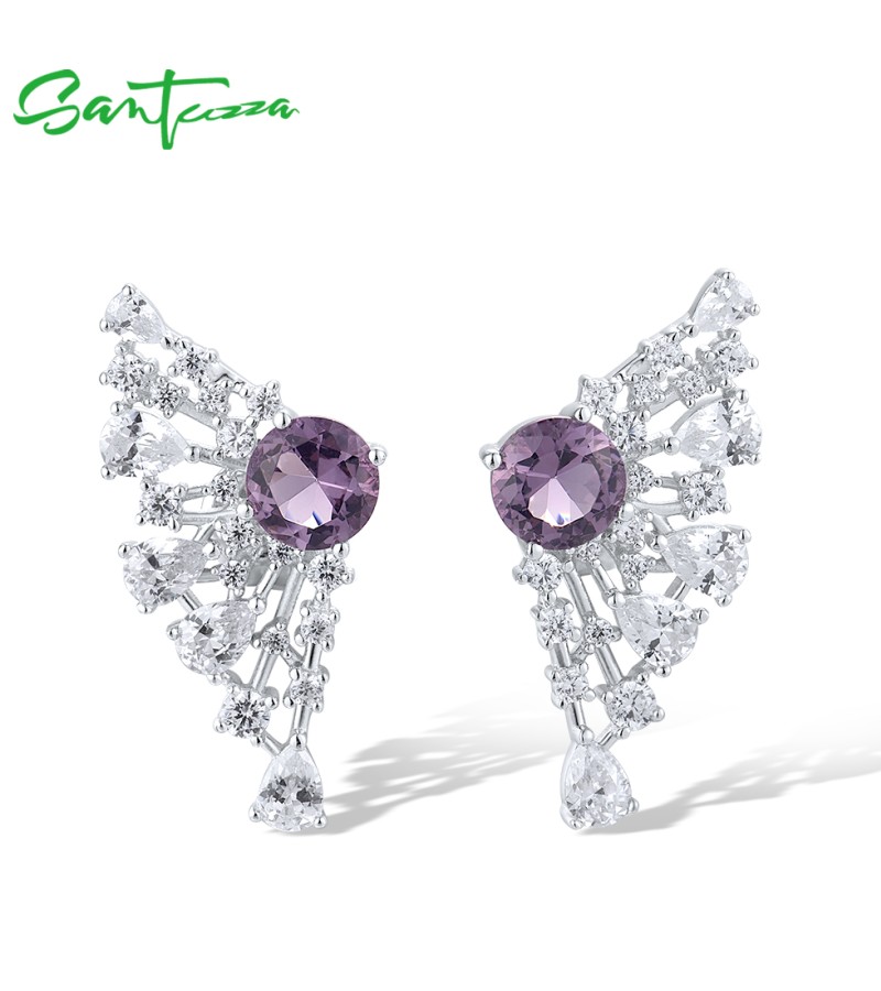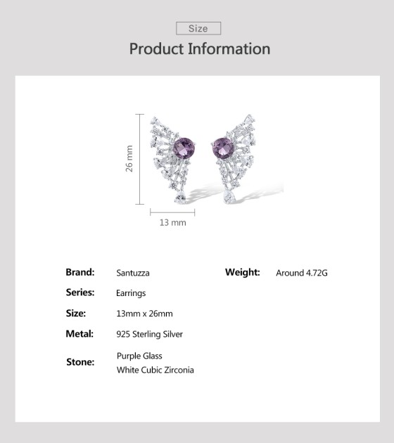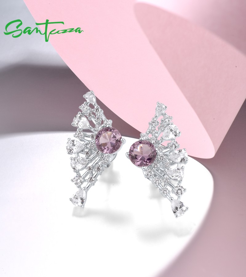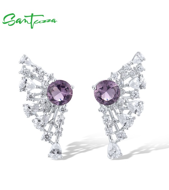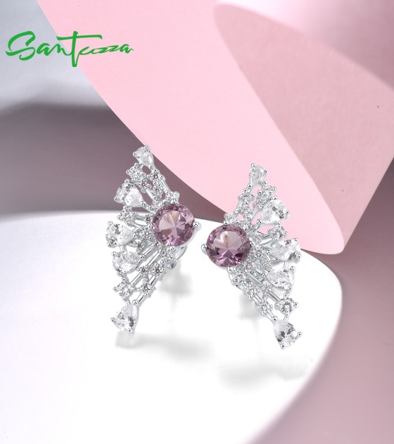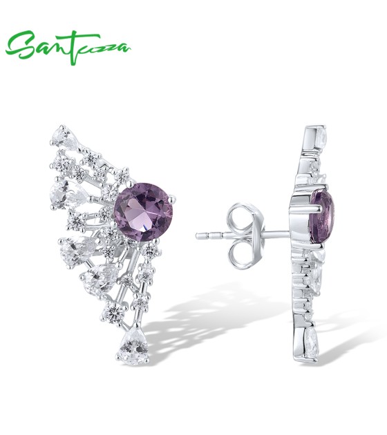 SANTUZZA 925 Sterling Silver Earrings Sparkling White/Purple Cubic Zirconia Jewelry
