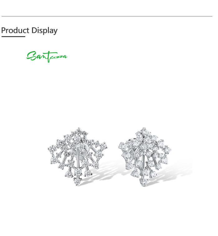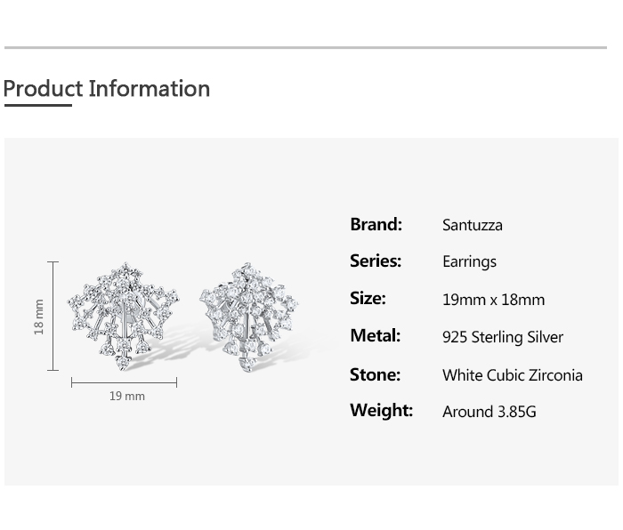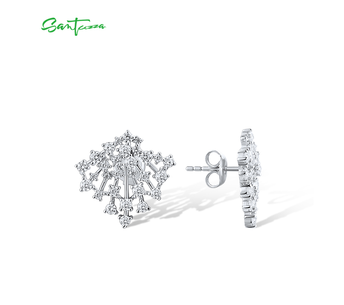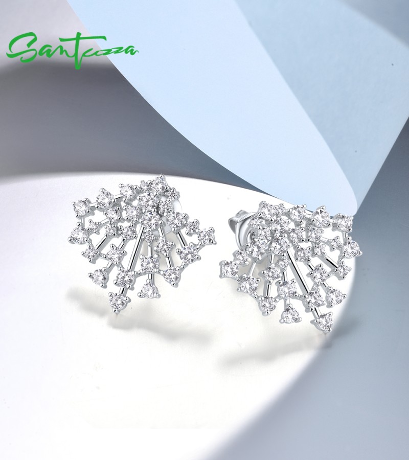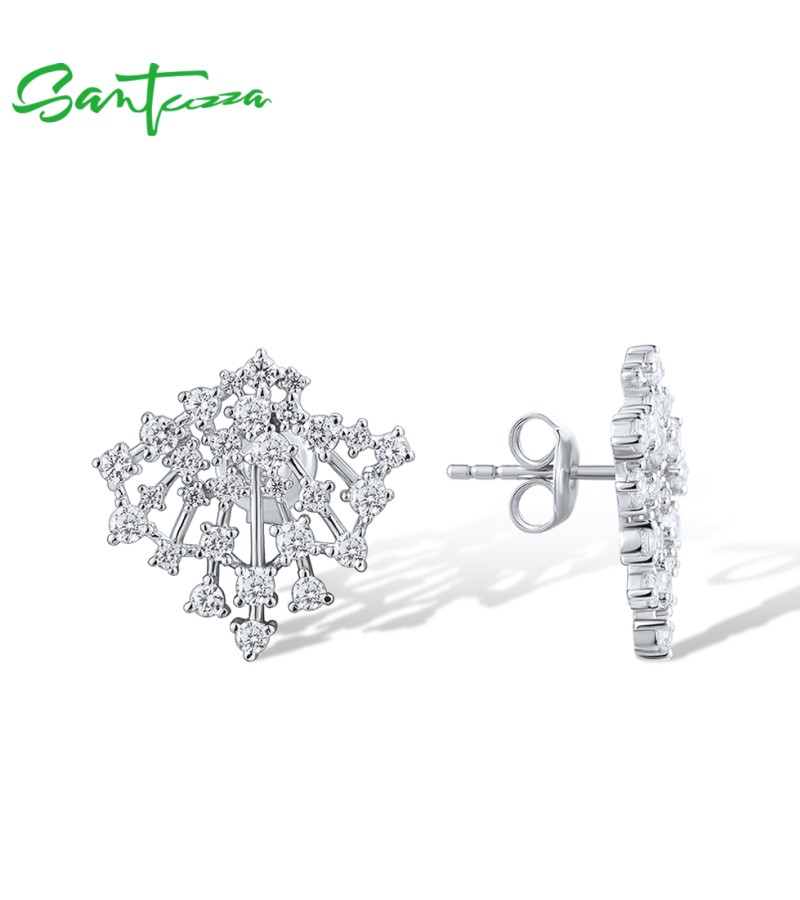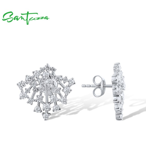 SANTUZZA 925 Sterling Silver Stud Earrings Sparkling White Cubic Zirconia Jewelry