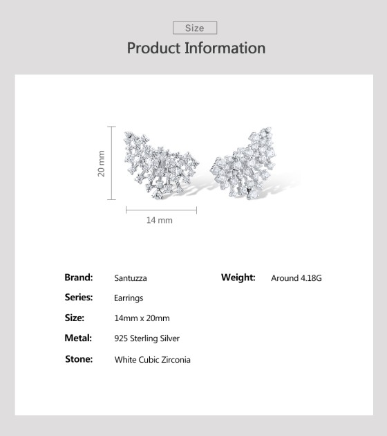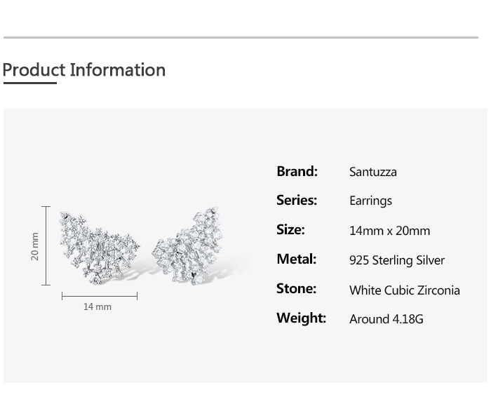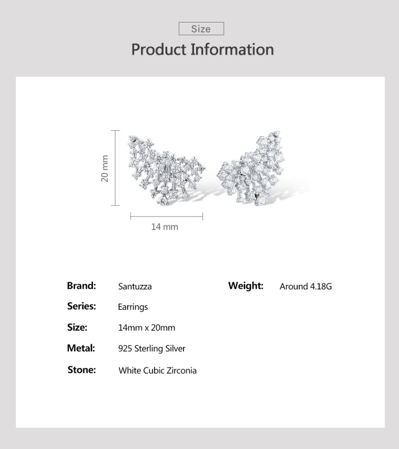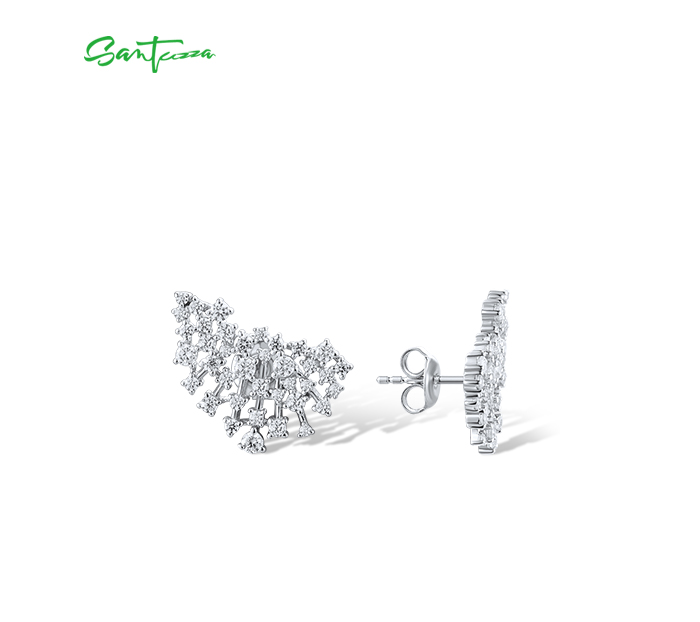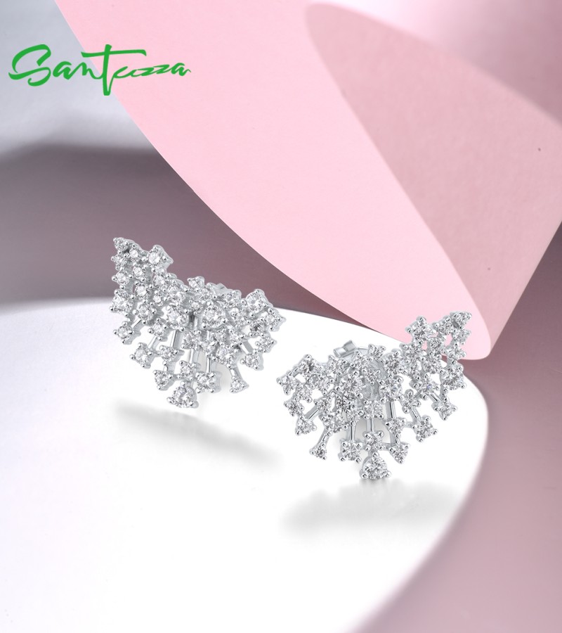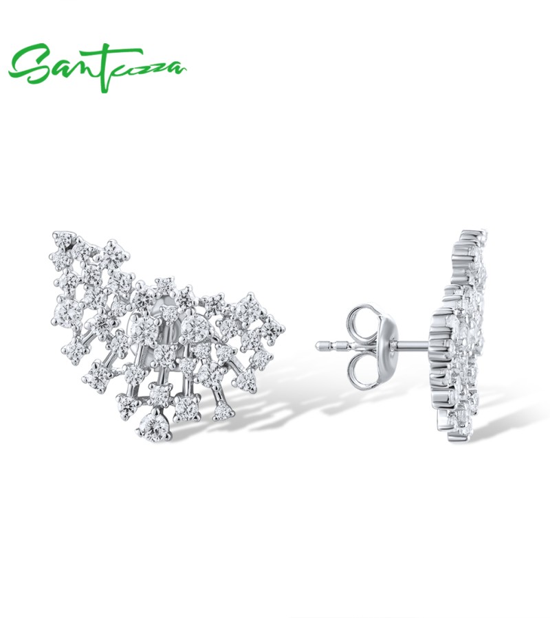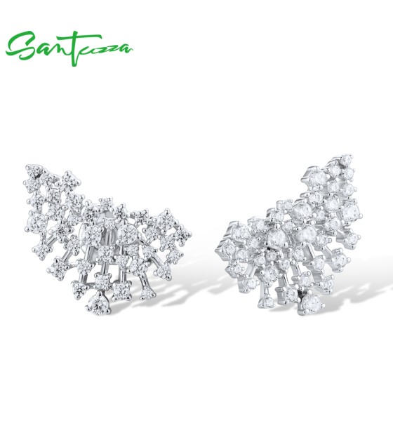 SANTUZZA 925 Sterling Silver Stud Earrings Sparkling White Cubic Zirconia Jewelry
