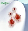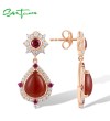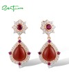 SANTUZZA 925 Sterling Silver Drop Earrings Dyed Red Agate Created Ruby Jewelry