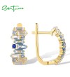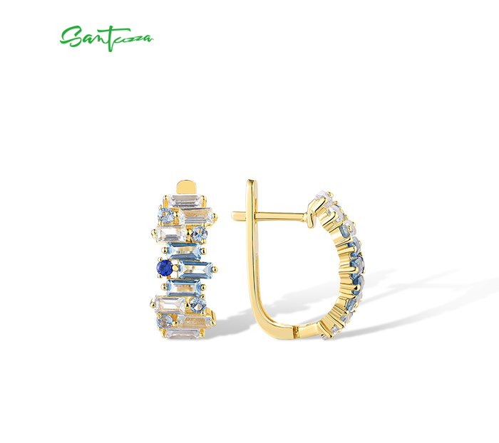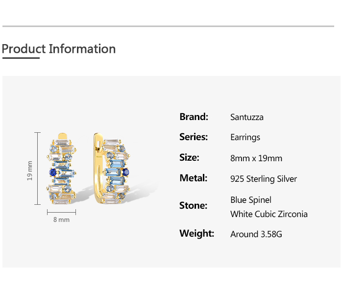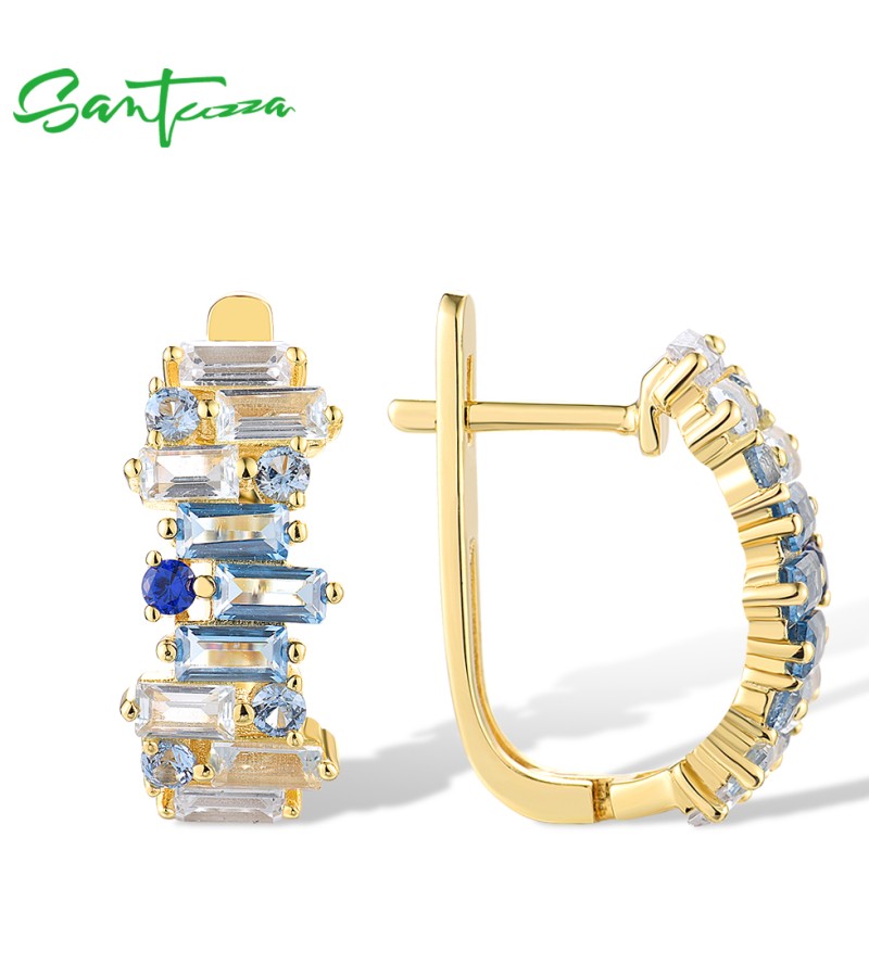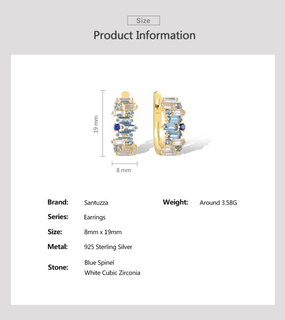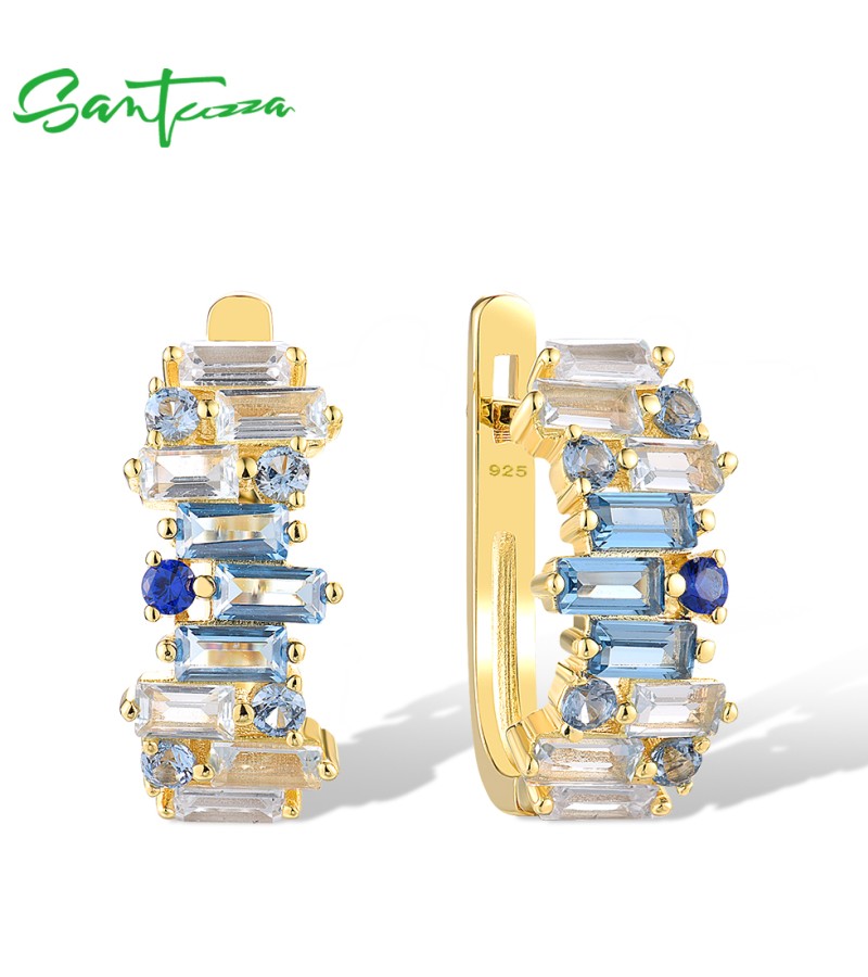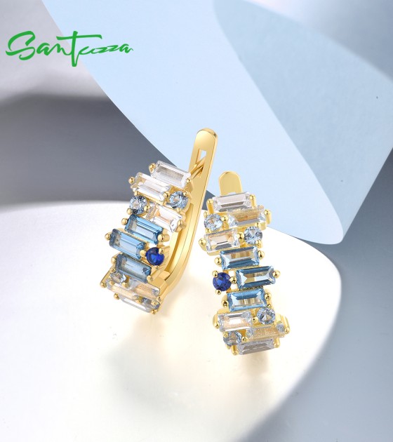 SANTUZZA 925 Sterling Silver Earrings Sparkling Blue Spinel Tapper Jewelry