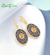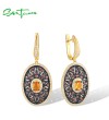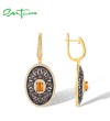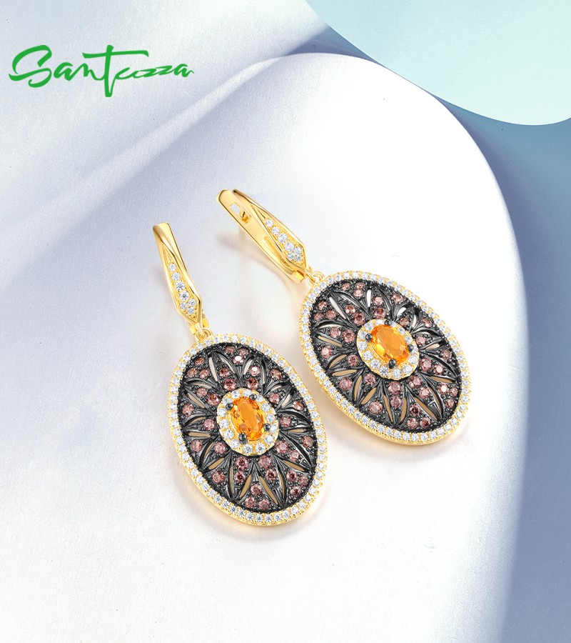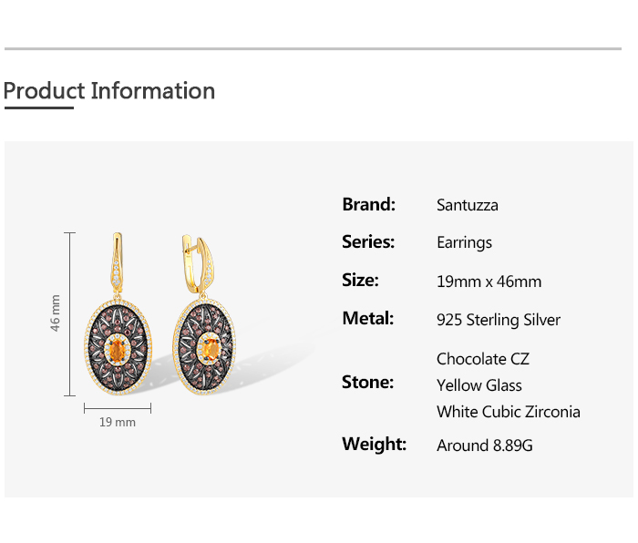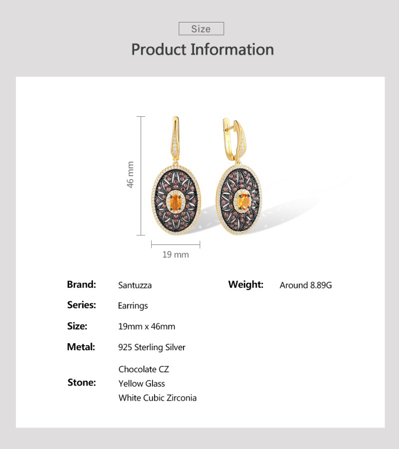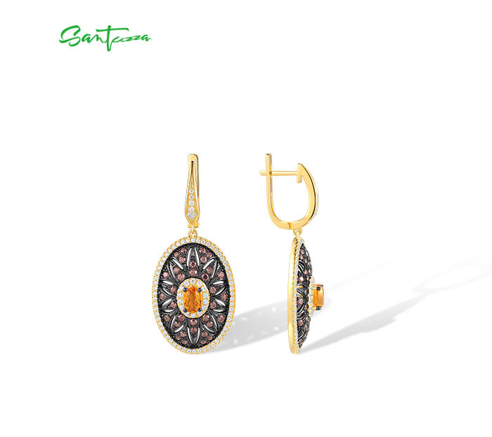 SANTUZZA 925 Sterling Silver Drop Earrings Chocolate CZ Chic Flower Jewelry