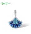 SANTUZZA 925 Sterling Silver Pendant Sparkling Blue Stone Enamel Jewelry