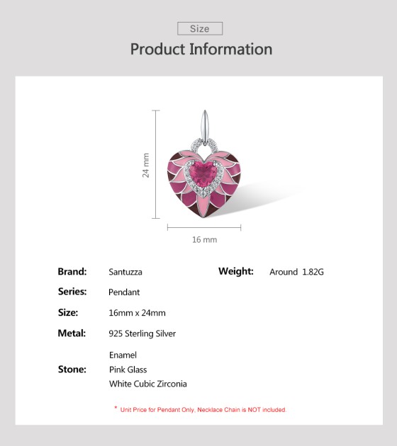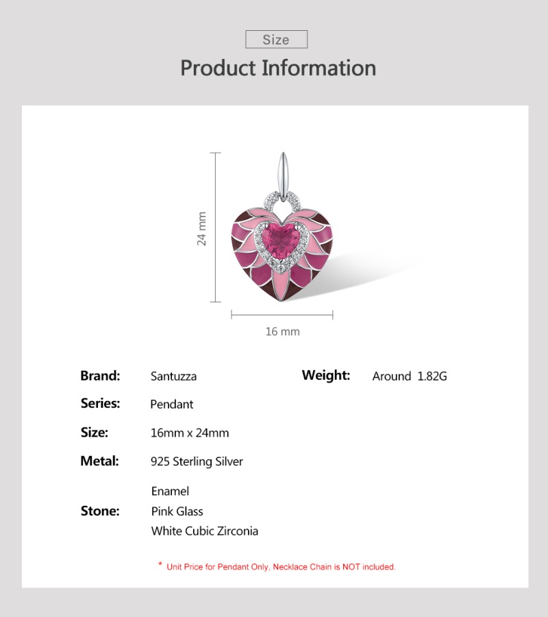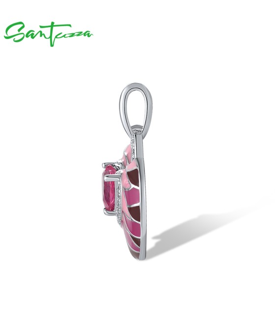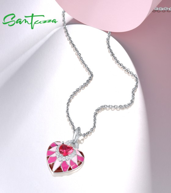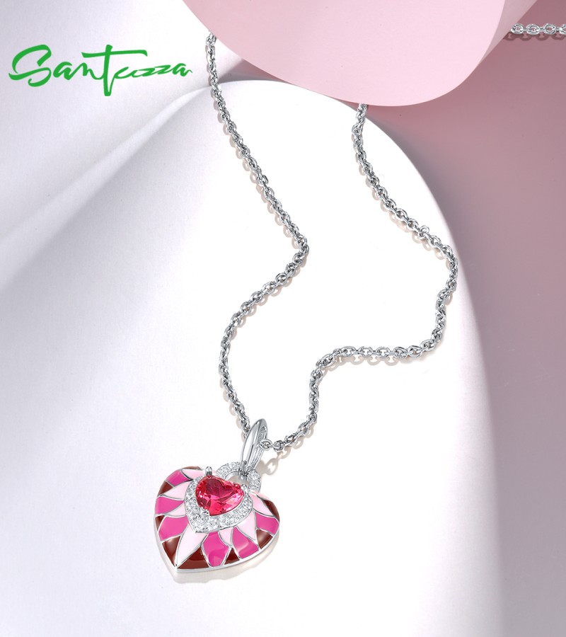 SANTUZZA 925 Sterling Silver Pendant Pink Stone Enamel Lovely Heart Jewelry
