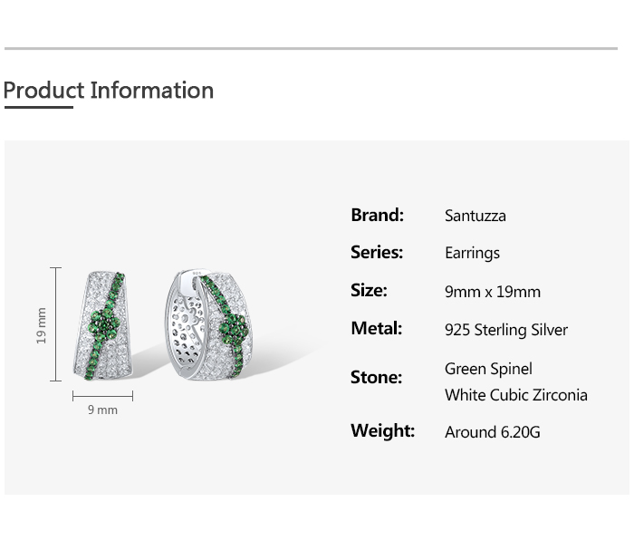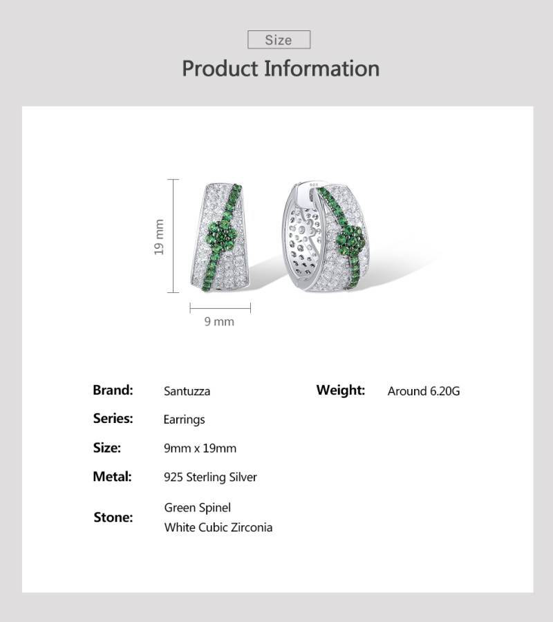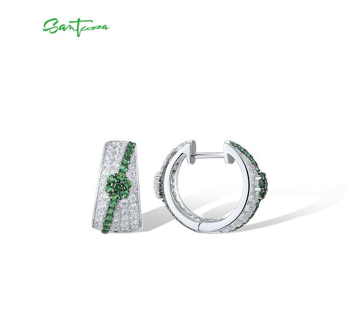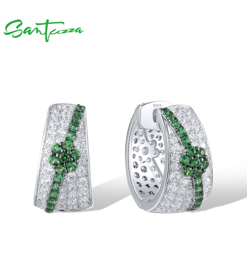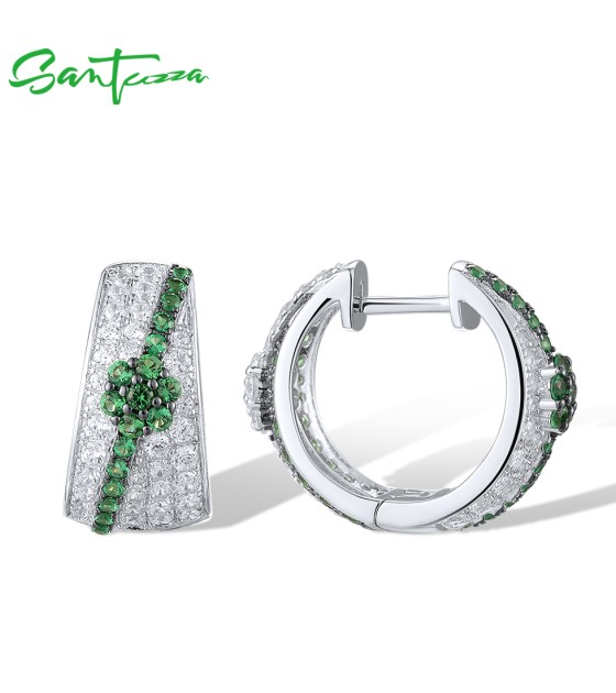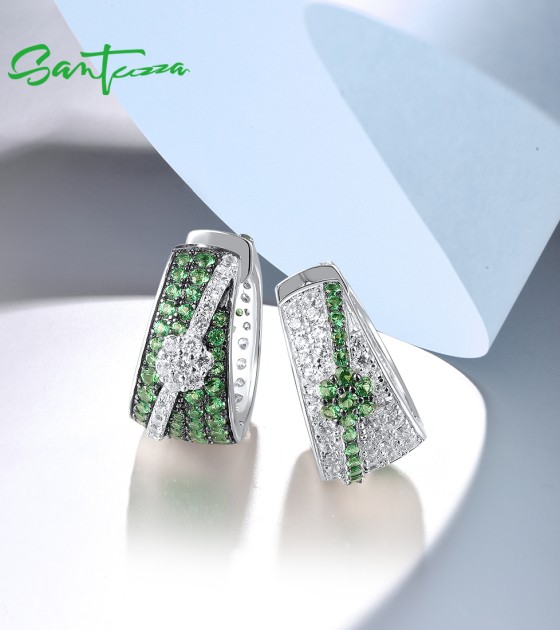 SANTUZZA 925 Sterling Silver Clip Earrings White CZ Green Spinel Jewelry