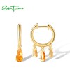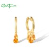 SANTUZZA 925 Sterling Silver Dangling Earrings Yellow Gems Hoop Jewelry
