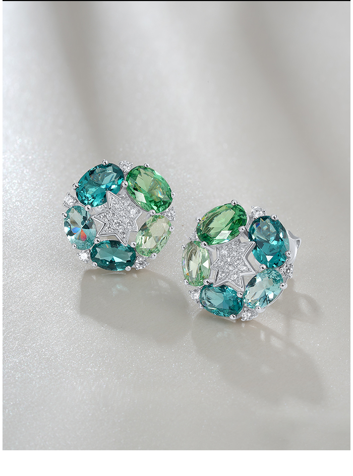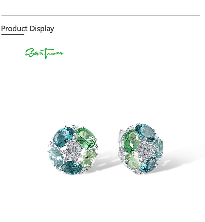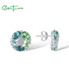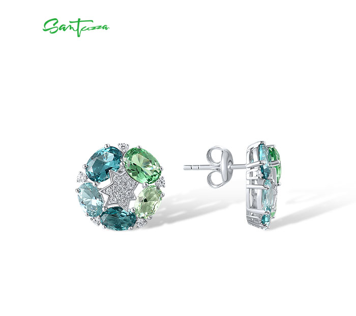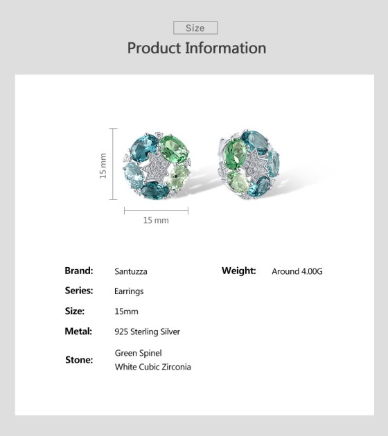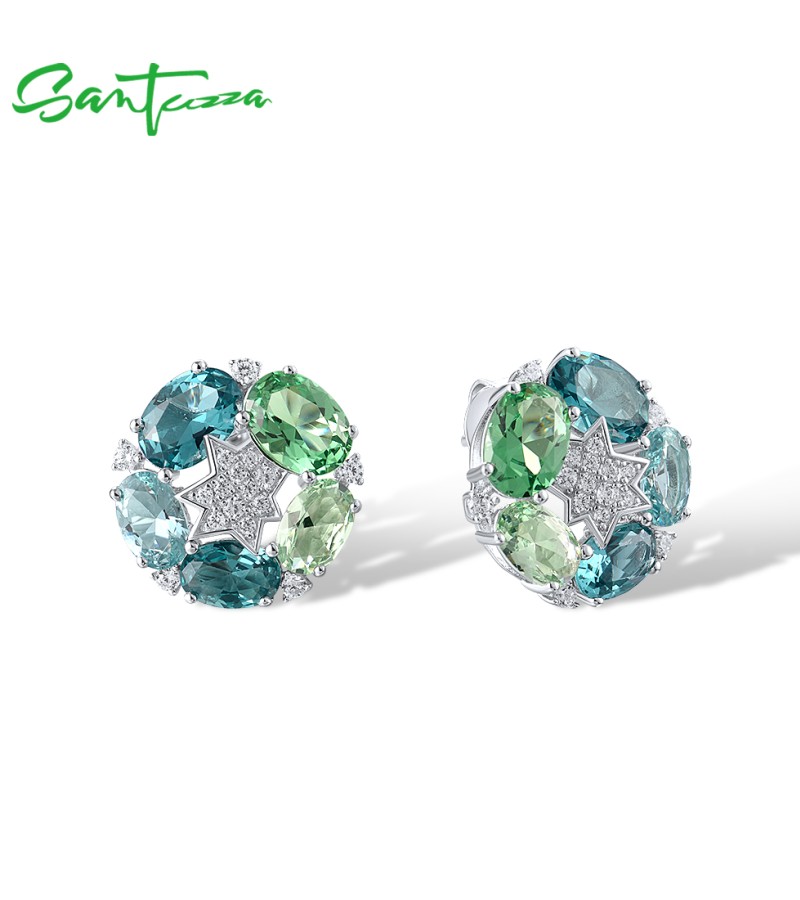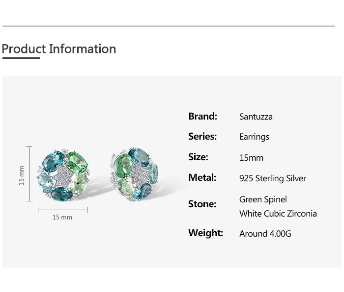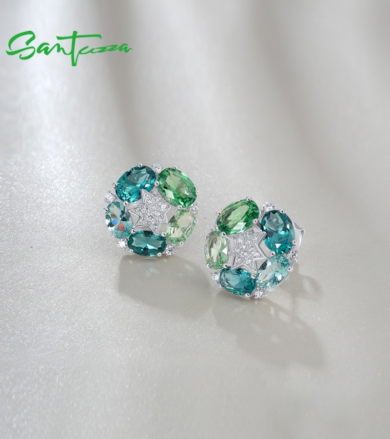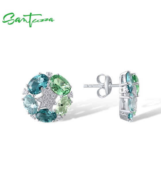 SANTUZZA 925 Sterling Silver Stud Earrings Green Spinel White Cubic Zirconia Jewelry