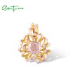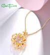 SANTUZZA 925 Sterling Silver Pendant Pink Cubic Zirconia Luminous Cornflower Enamel Jewelry