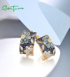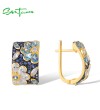 SANTUZZA 925 Sterling Silver Earrings Sparkling Blue Spinel Flower Jewelry