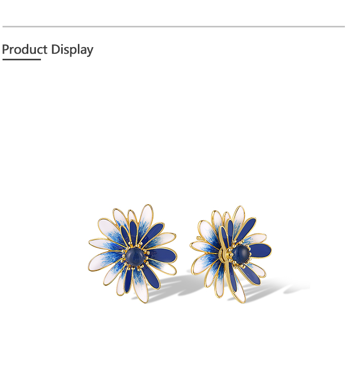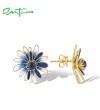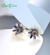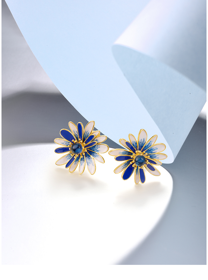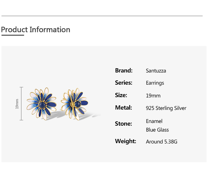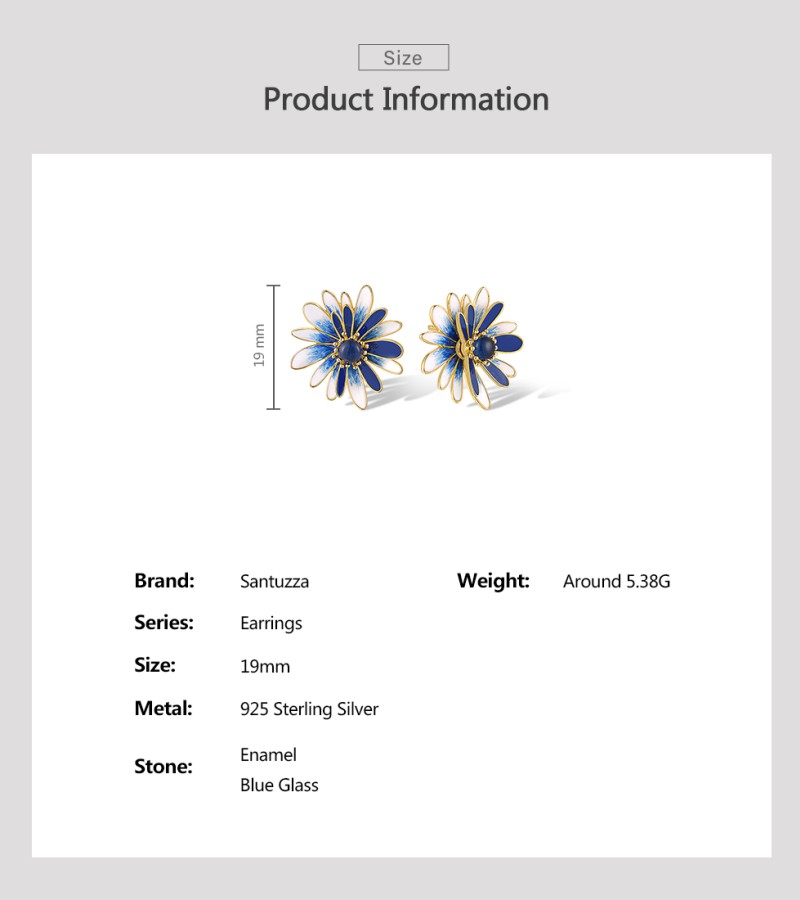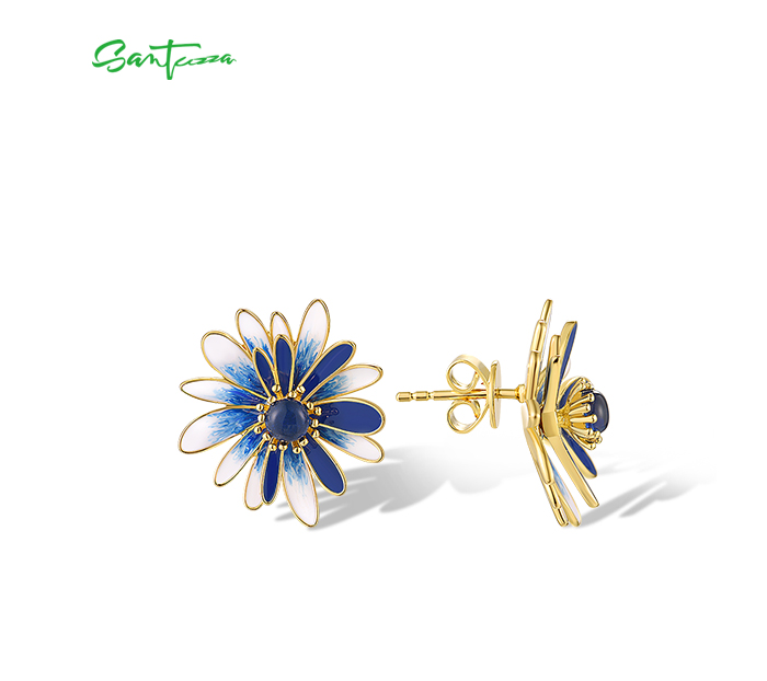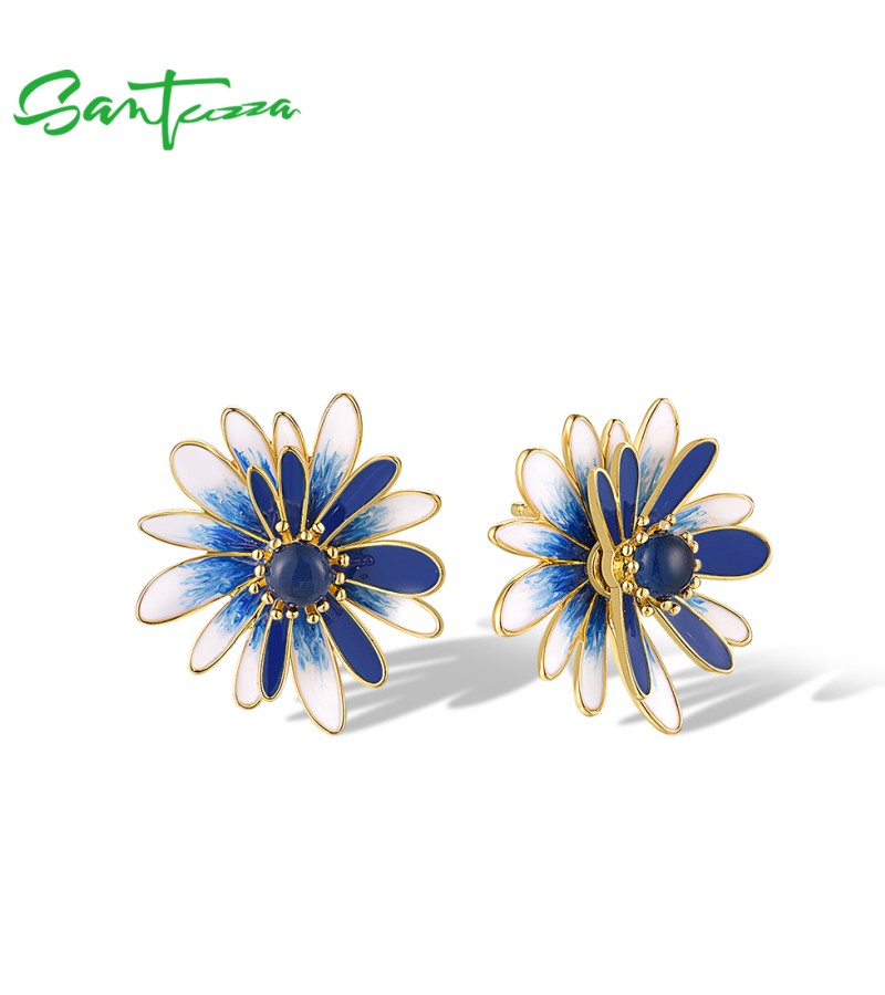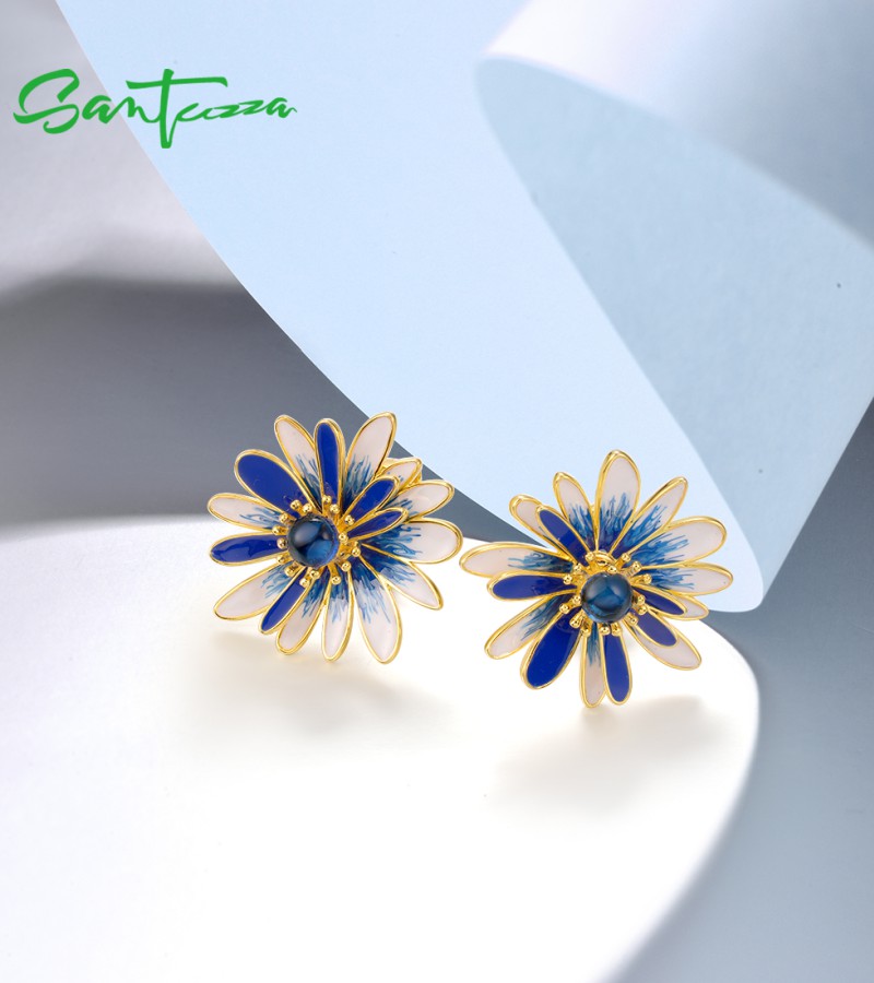SANTUZZA 925 Sterling Silver Earrings Blue White Enamel Daisy Flower Jewelry