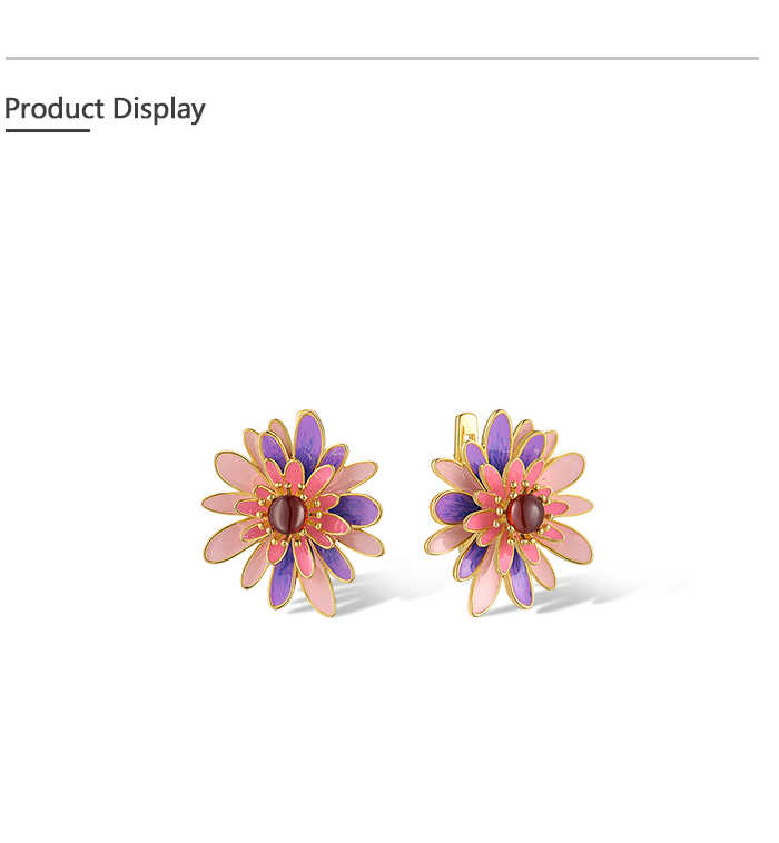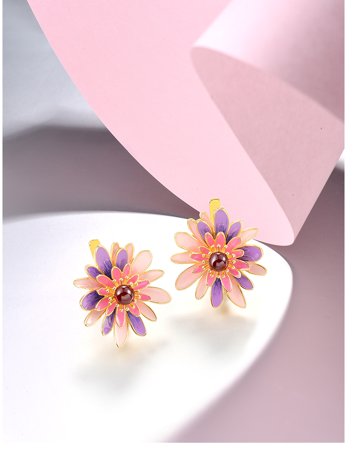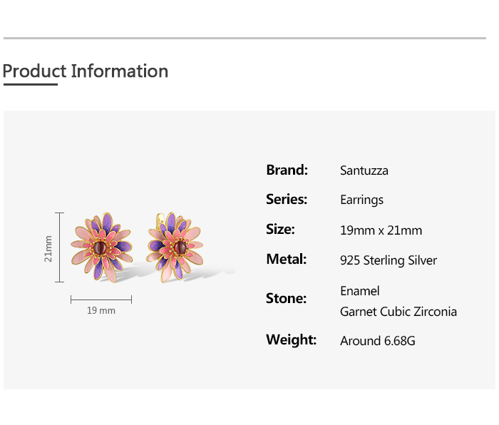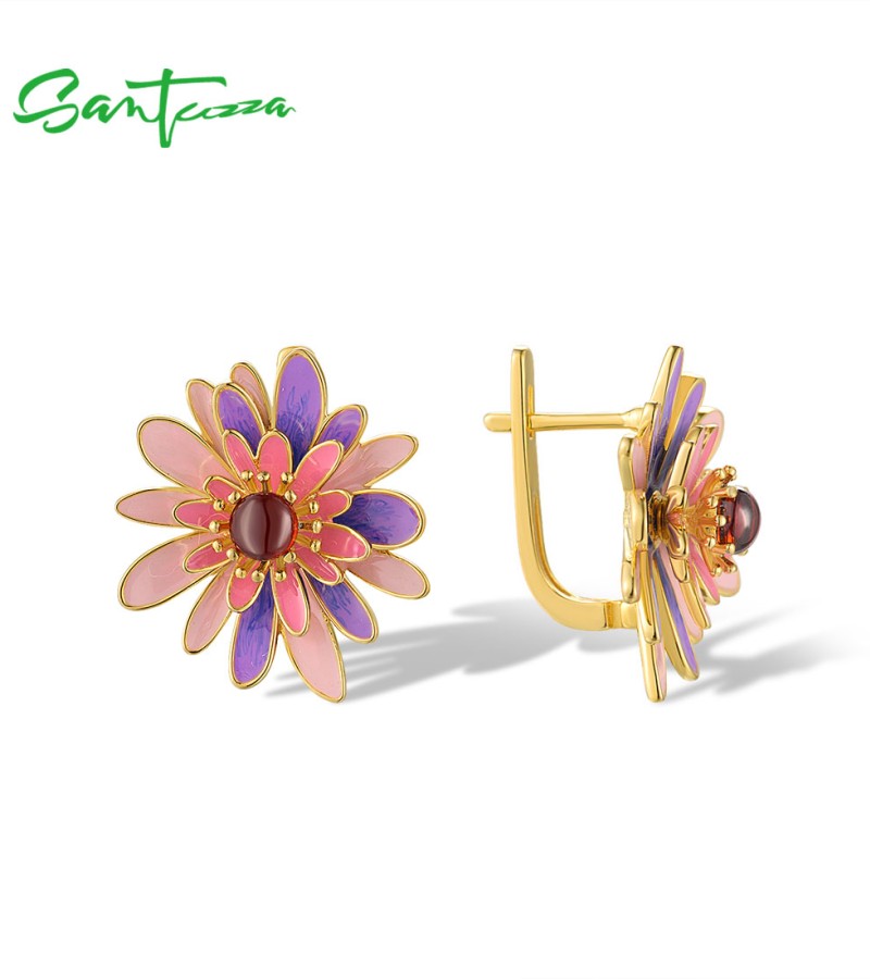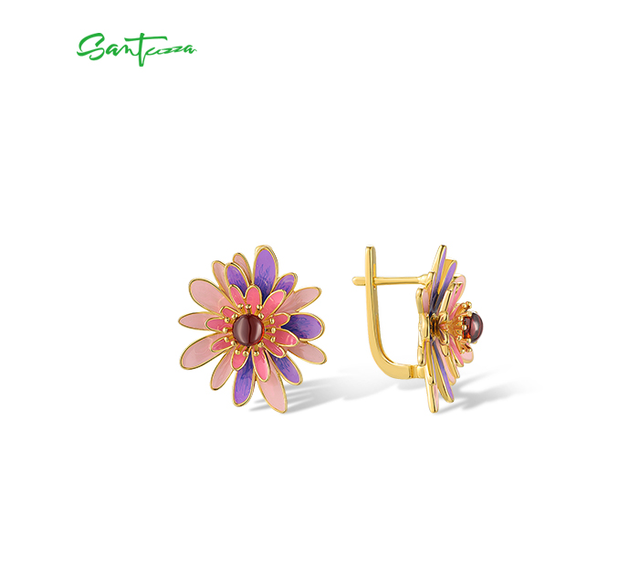 SANTUZZA 925 Sterling Silver Earrings Purple & Pink Enamel Romantic Daisy Jewelry