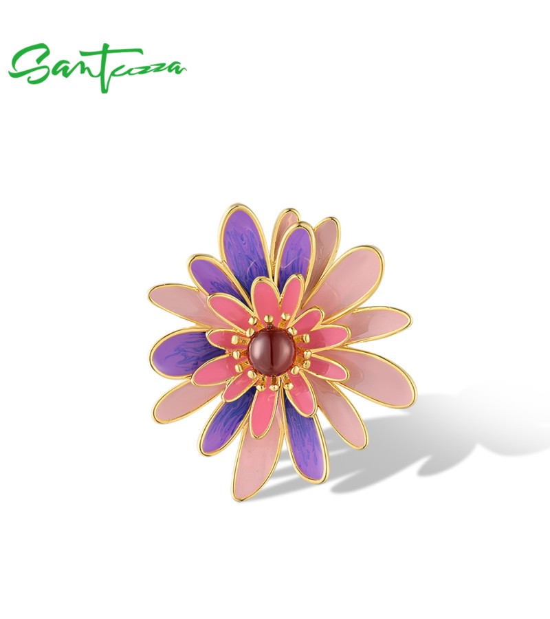 SANTUZZA 925 Sterling Silver Rings Green & Black Enamel Daisy Fine Jewelry - US 9/Pink Enamel