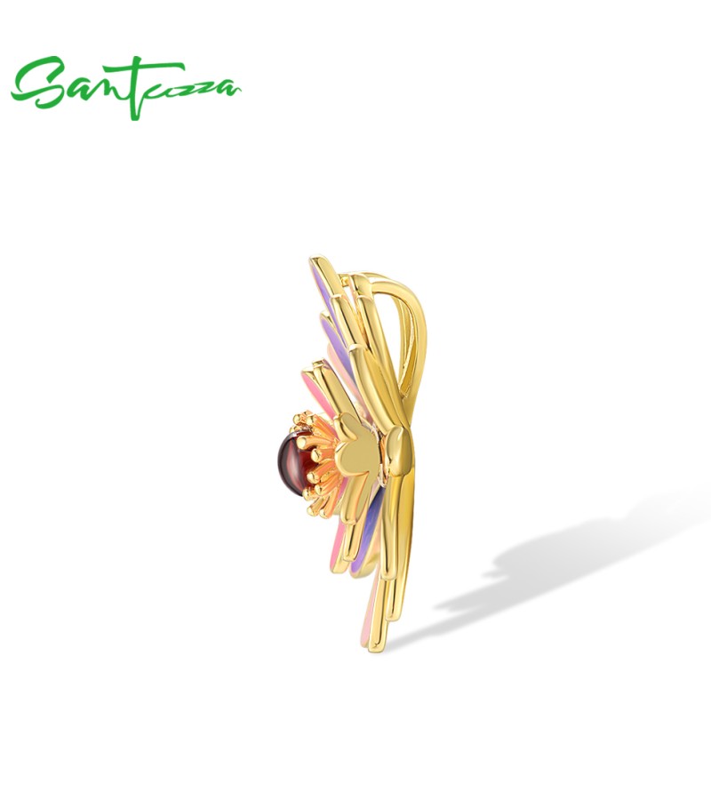 SANTUZZA 925 Sterling Silver Earrings Purple & Pink Enamel Romantic Daisy Jewelry