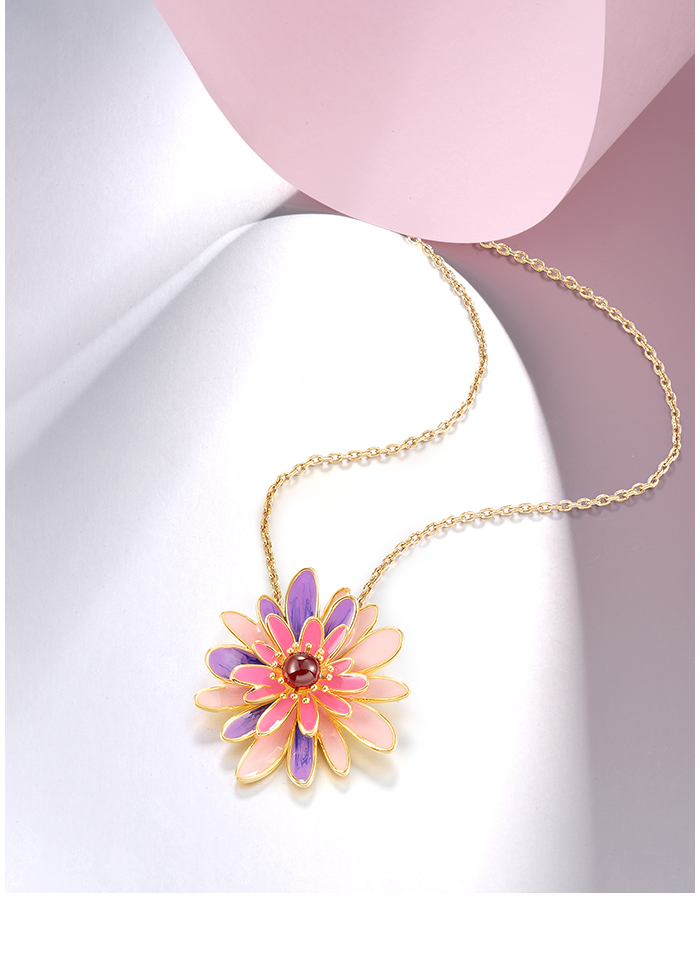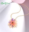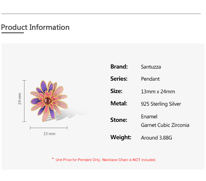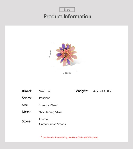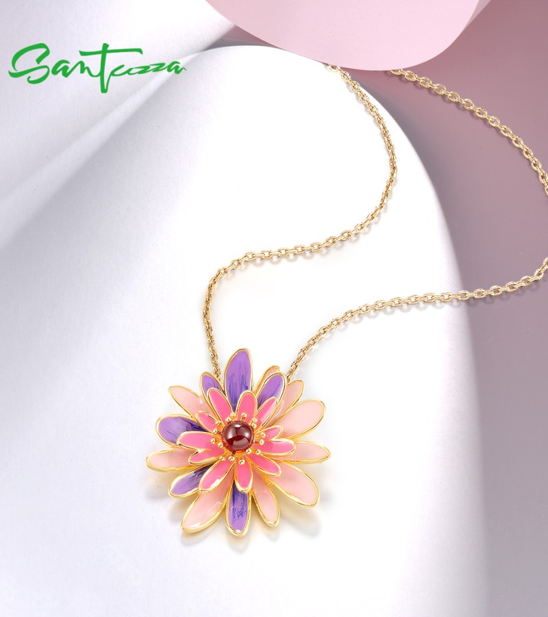 SANTUZZA 925 Sterling Silver Pendant Sparkling Purple & Pink Daisy Jewelry