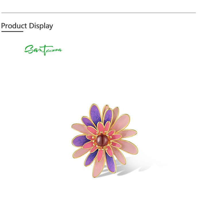 SANTUZZA 925 Sterling Silver Rings Green & Black Enamel Daisy Fine Jewelry - US 7/Pink Enamel