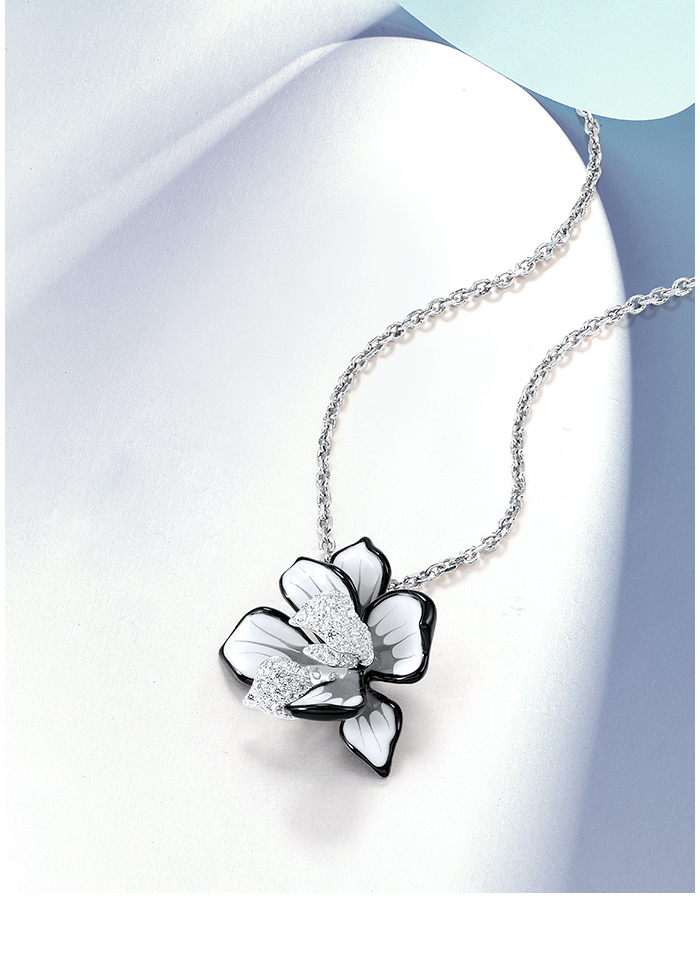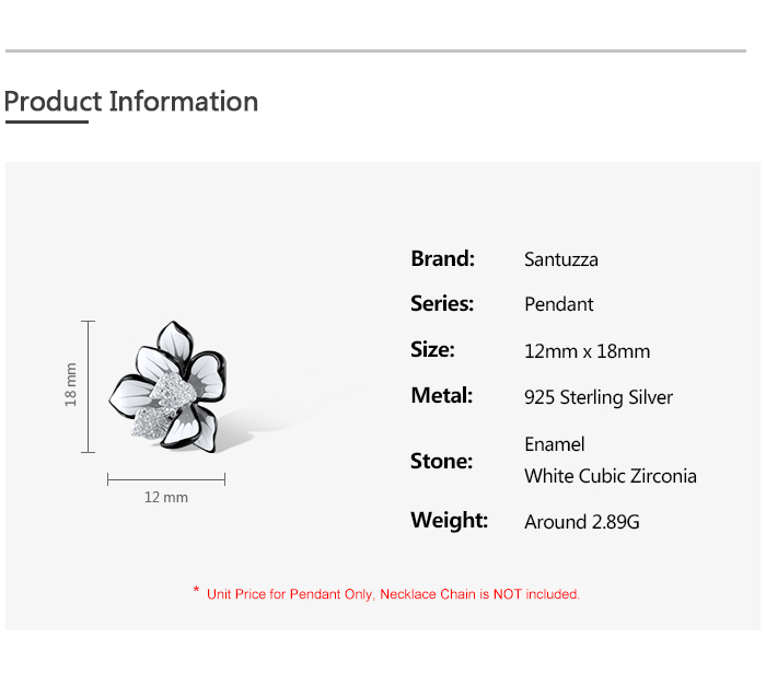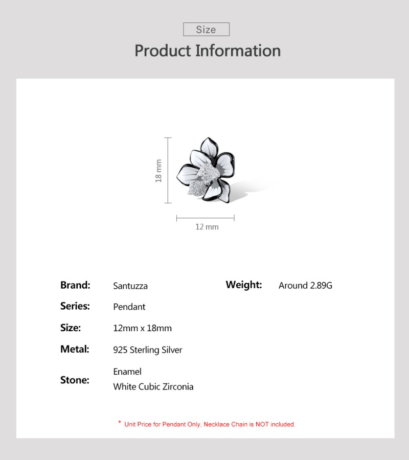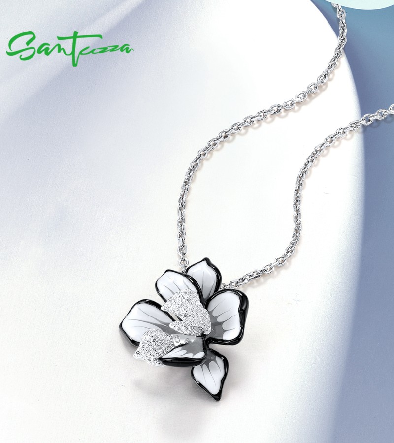 SANTUZZA 925 Sterling Silver Pendant Zircon White Enamel Flower Jewelry
