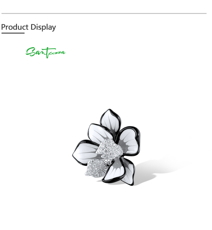 SANTUZZA 925 Sterling Silver Ring Sparkling Zircon White Enamel Flower Jewelry - US 7