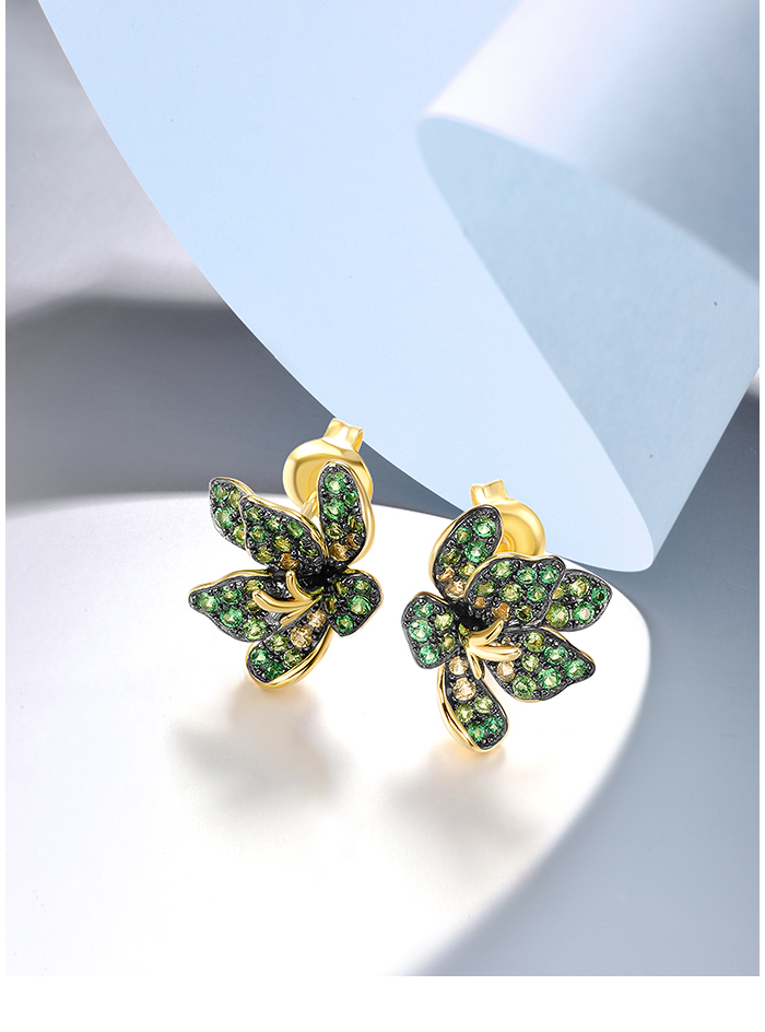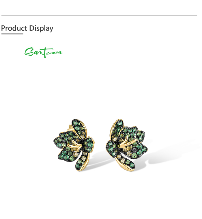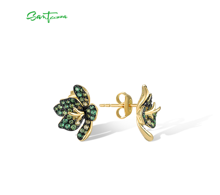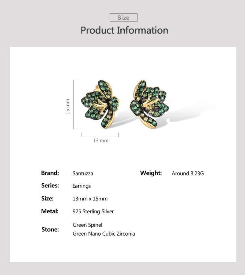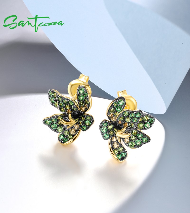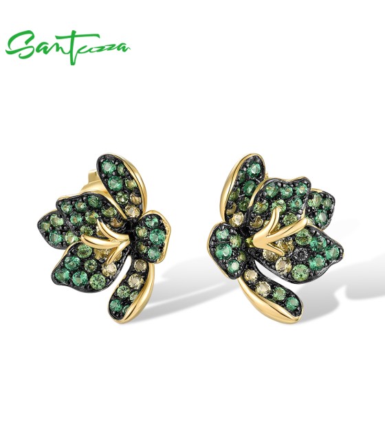SANTUZZA 925 Sterling Silver Earrings Green Spinel Exaggerate Lili Flower Jewelry