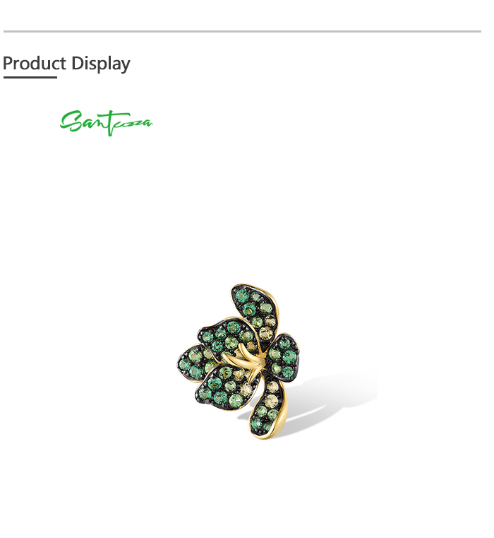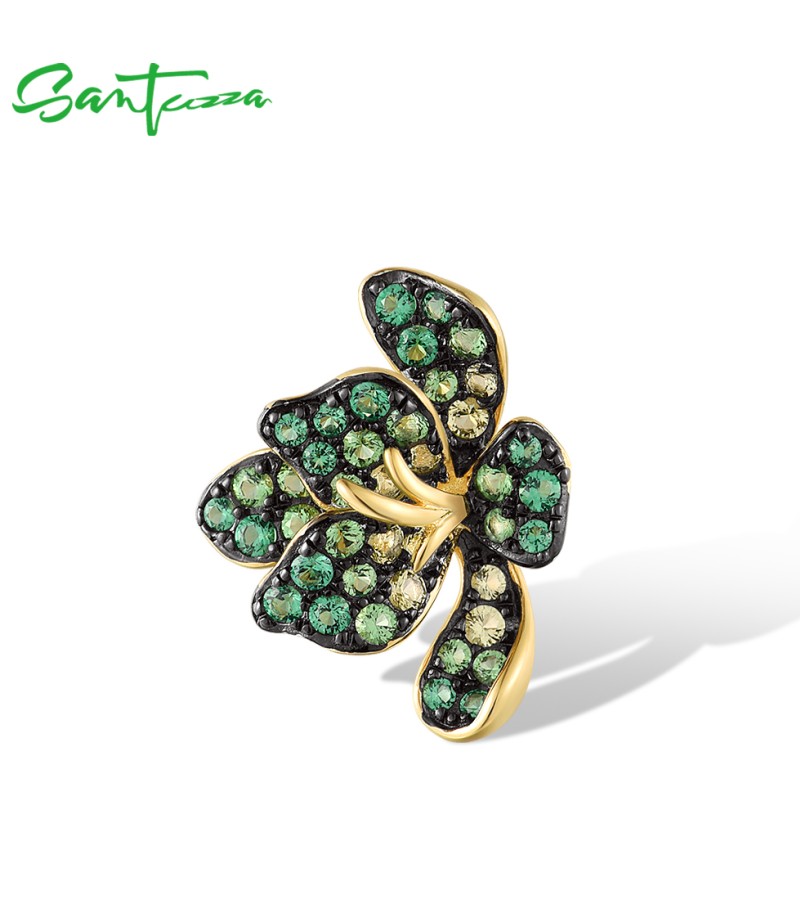 SANTUZZA 925 Sterling Silver Rings Sparkling Green Spinel Lili Flower Jewelry - US 7