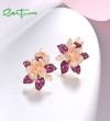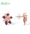 SANTUZZA 925 Sterling Silver Earrings Created Ruby Pink Sapphire Flower Jewelry