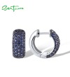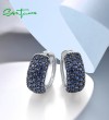 SANTUZZA 925 Sterling Silver Loop Earrings Sparkling Created Blue Sapphire Jewelry