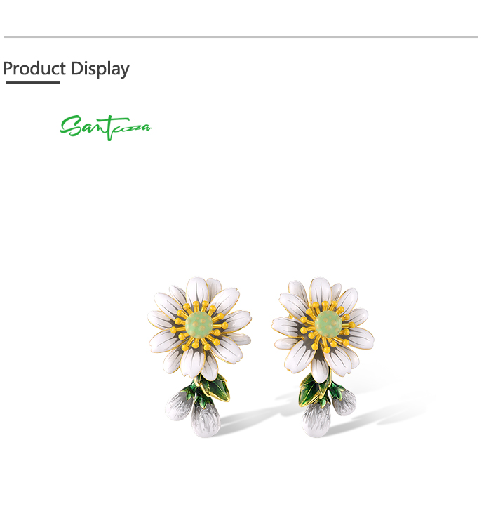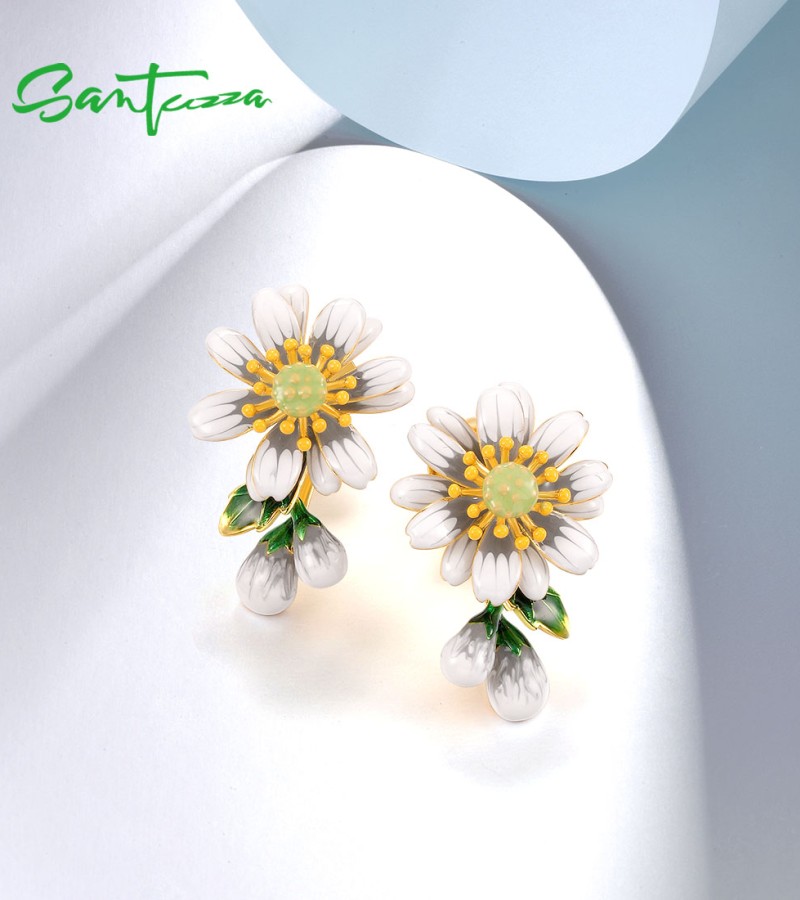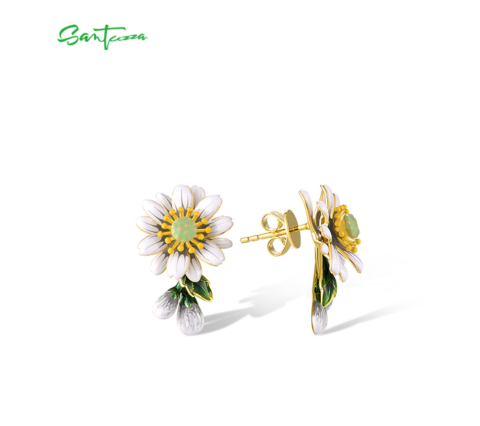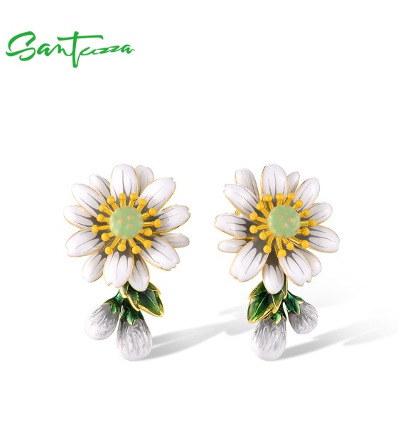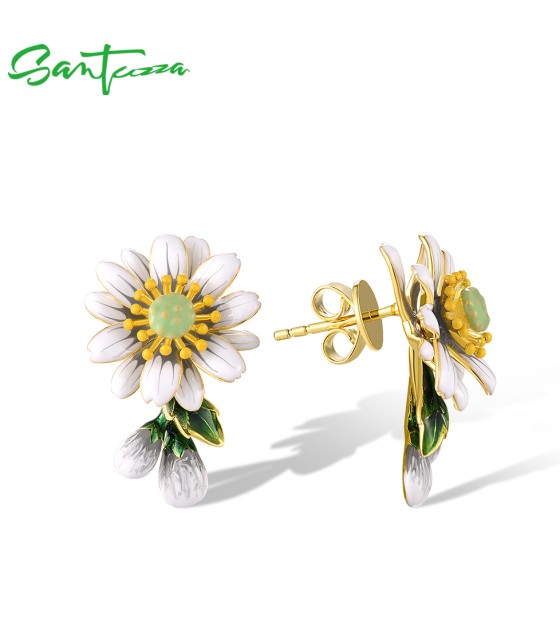 SANTUZZA 925 Sterling Silver Stud Earrings Sparkling Fancy Sun Flower Drop Jewelry