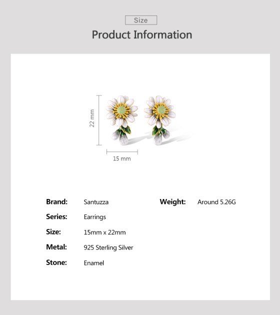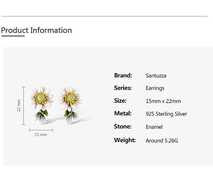 SANTUZZA 925 Sterling Silver Pendant Sparkling White Enamel Sun Flower Jewelry