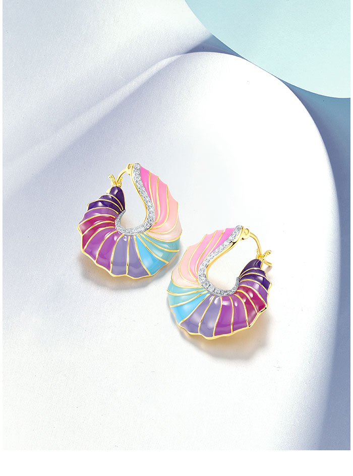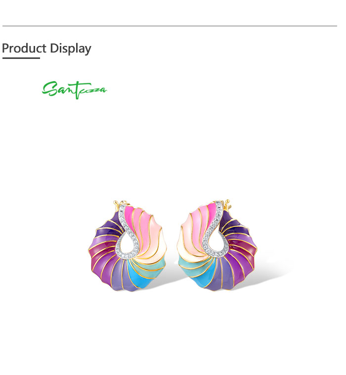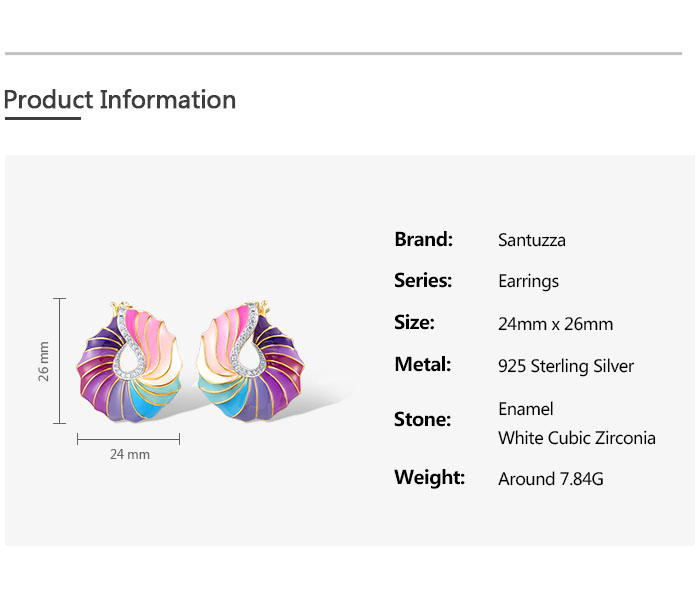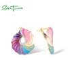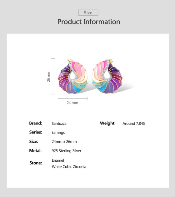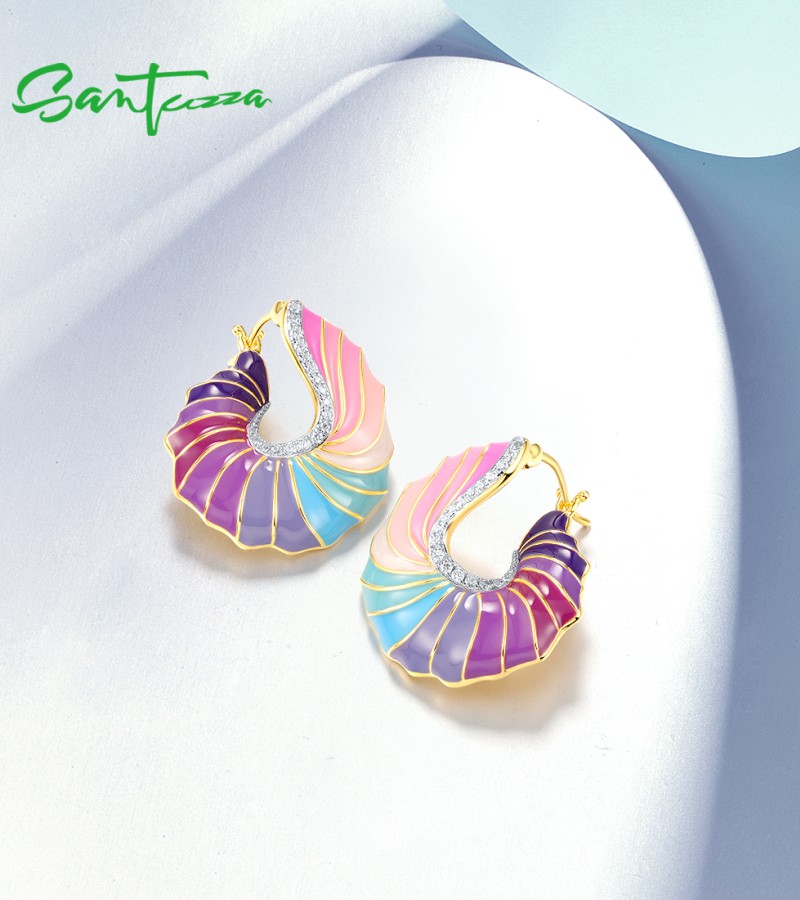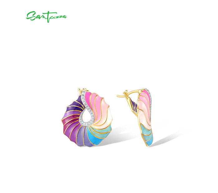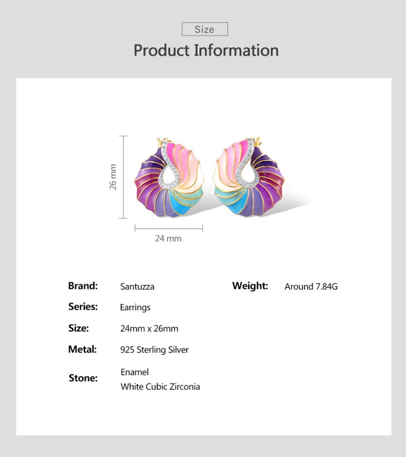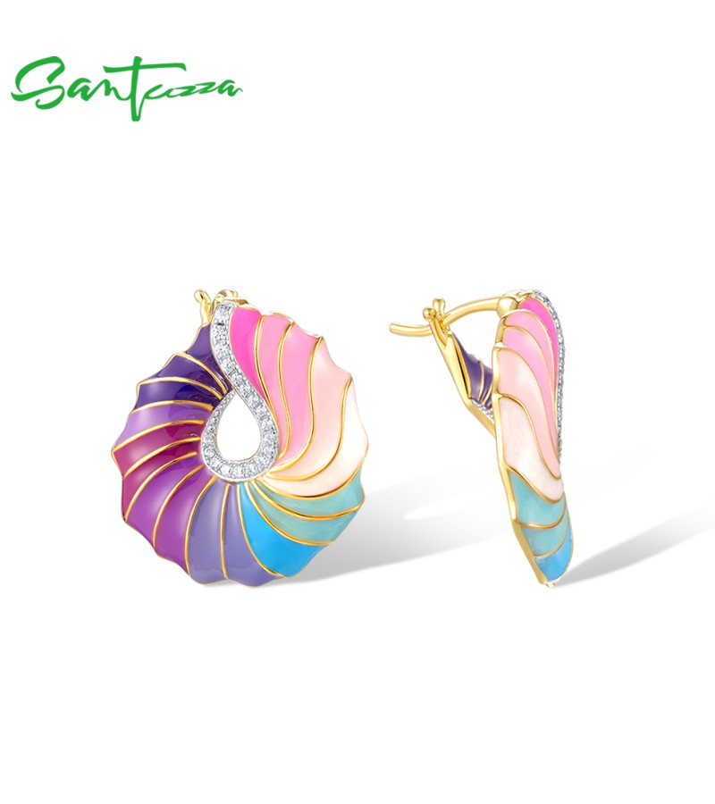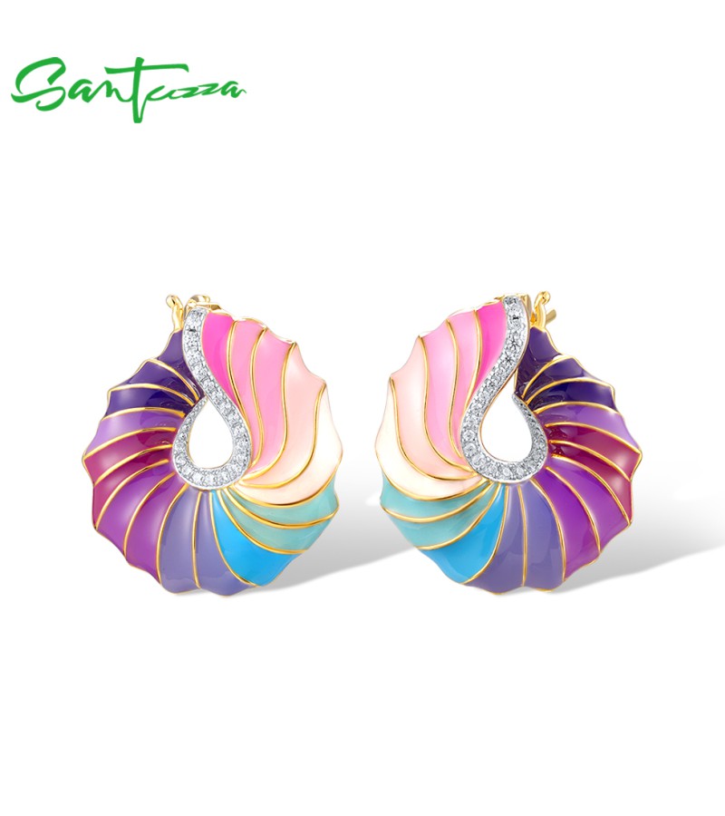 SANTUZZA 925 Sterling Silver Stud Earrings CZ Colorful Twisted Pattern / Conch Jewelry