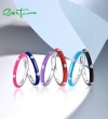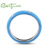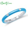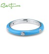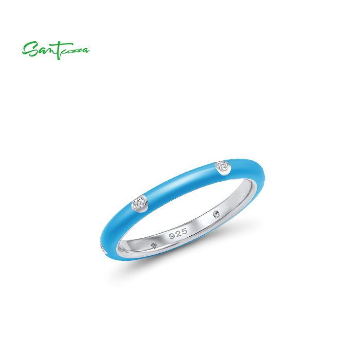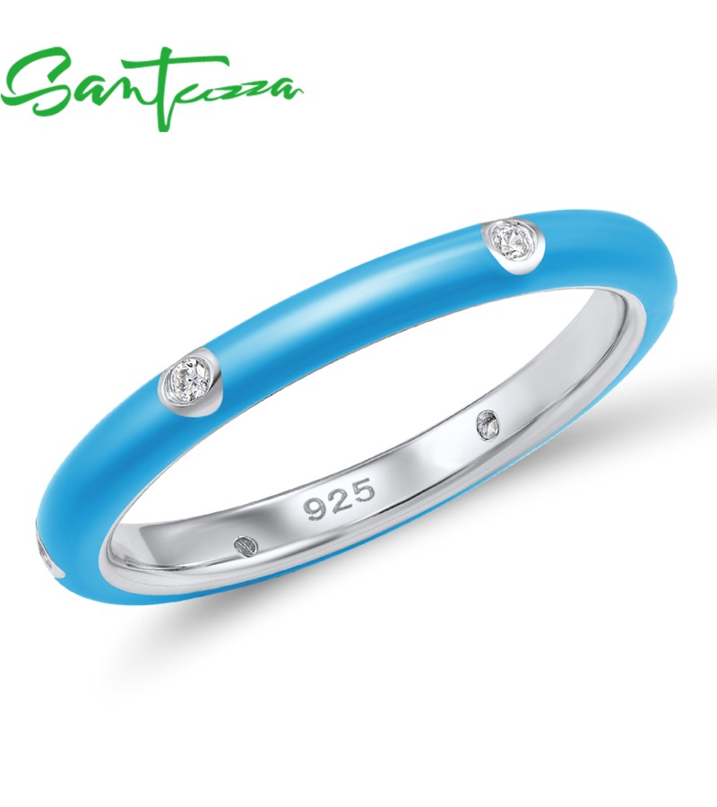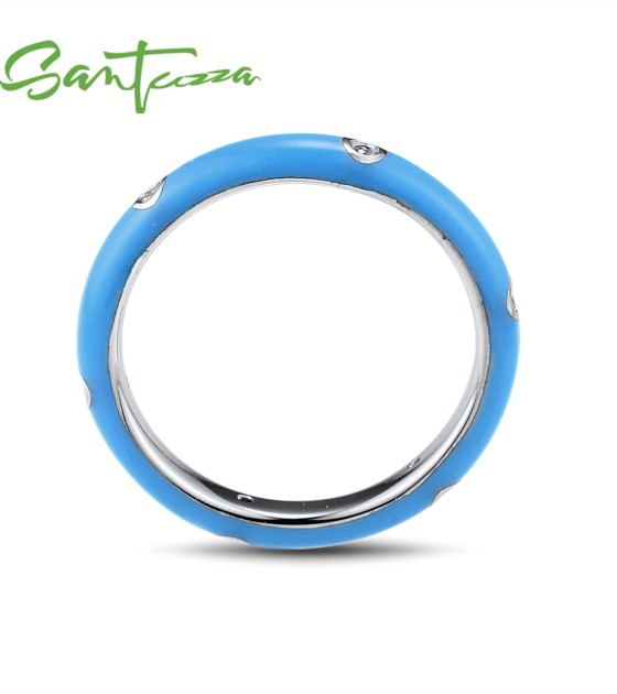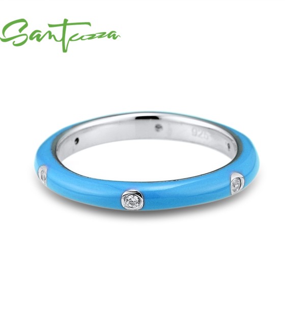 SANTUZZA 925 Sterling Silver White Cubic Zirconia Stackable Ring Jewelry Blue Enamel