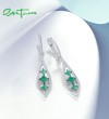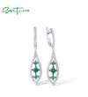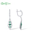 SANTUZZA 925 Sterling Silver Drop Earrings White CZ Green Stone Jewelry