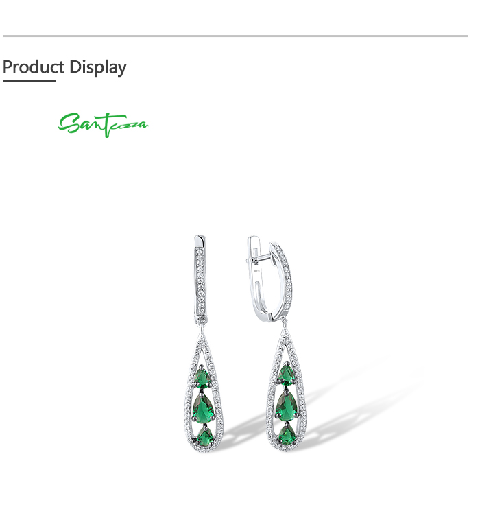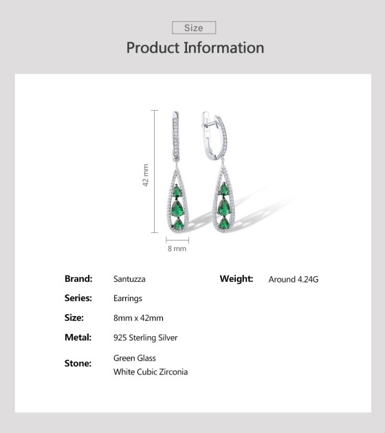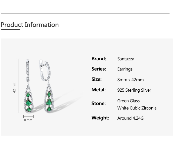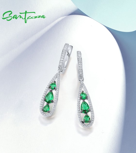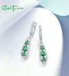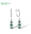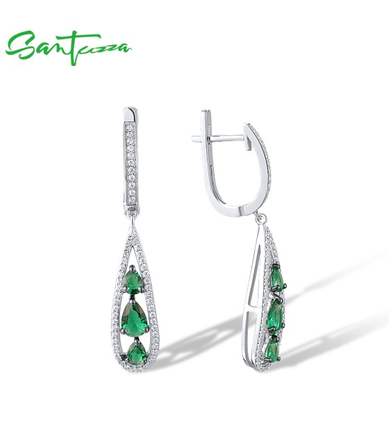 SANTUZZA 925 Sterling Silver Drop Earrings White CZ Green Stone Jewelry