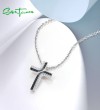 SANTUZZA 925 Sterling Silver Pendant Classic Cross Black Spinel & White CZ Jewelry