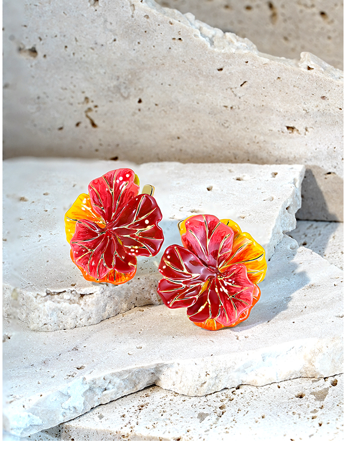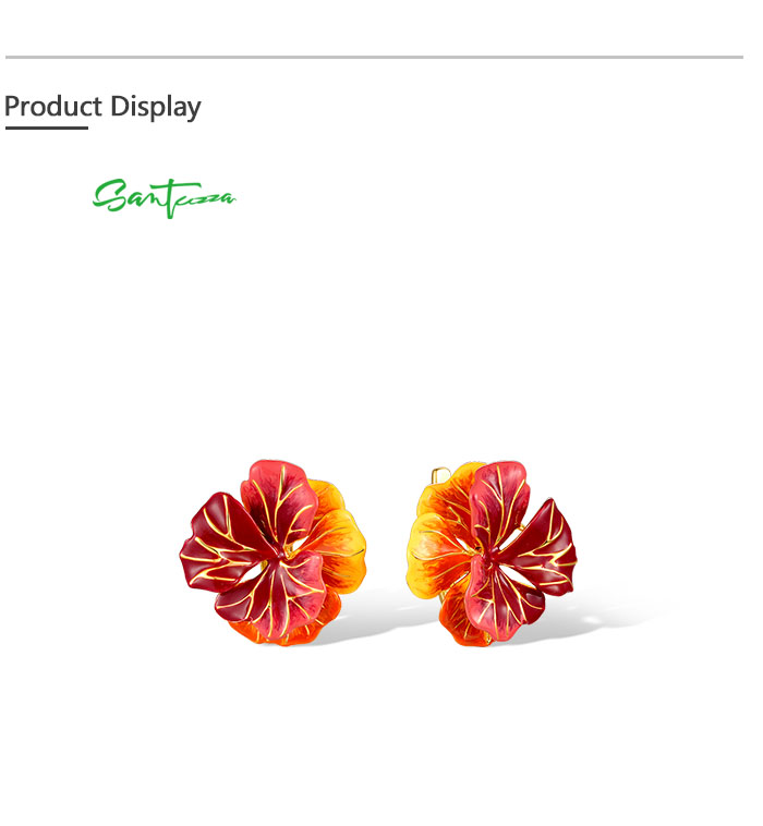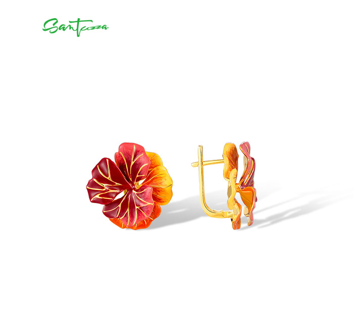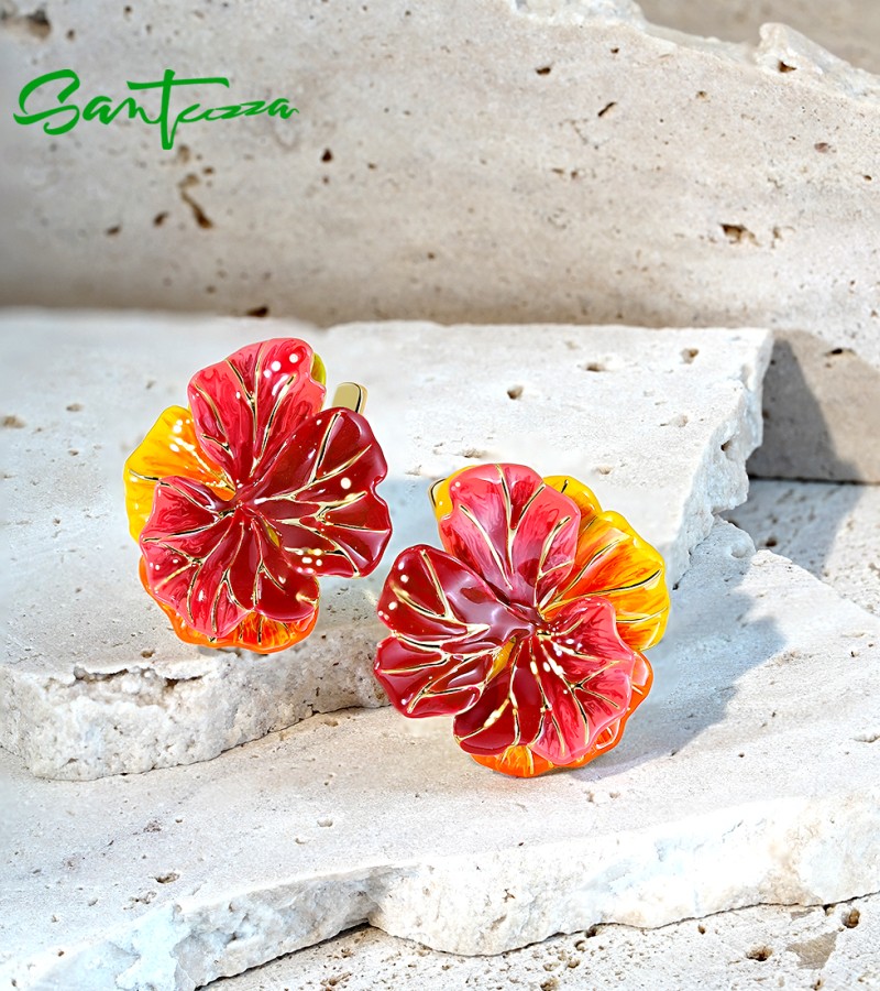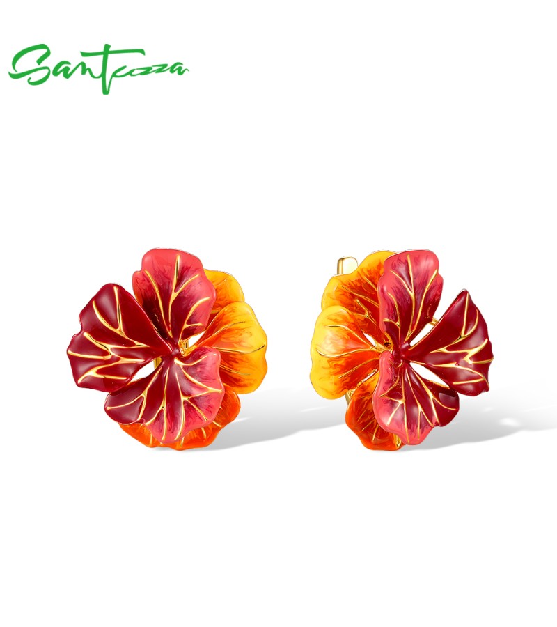SANTUZZA 925 Sterling Silver Earrings Sparkling Red Enamel Maple Leaves Jewelry
