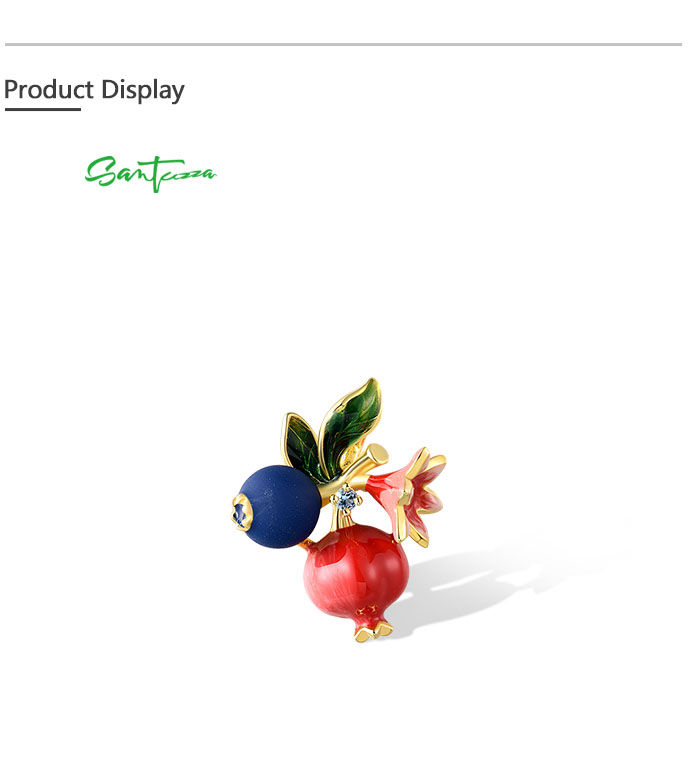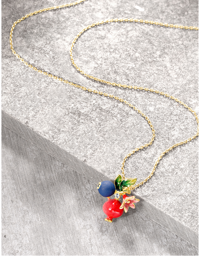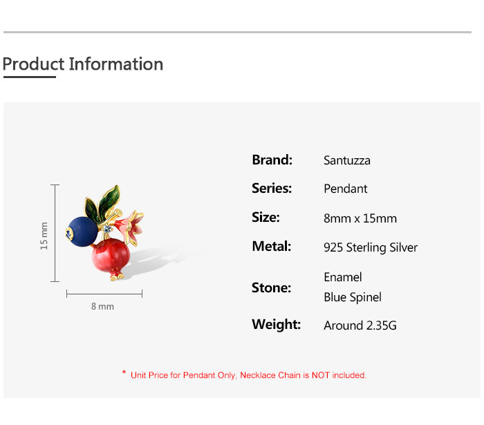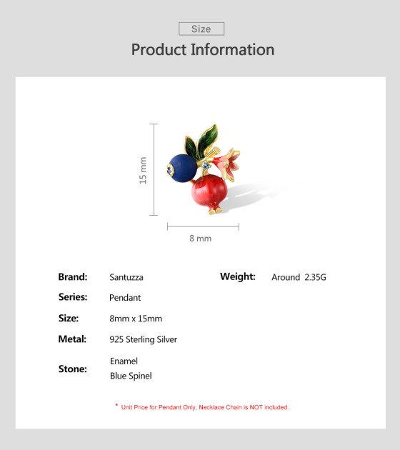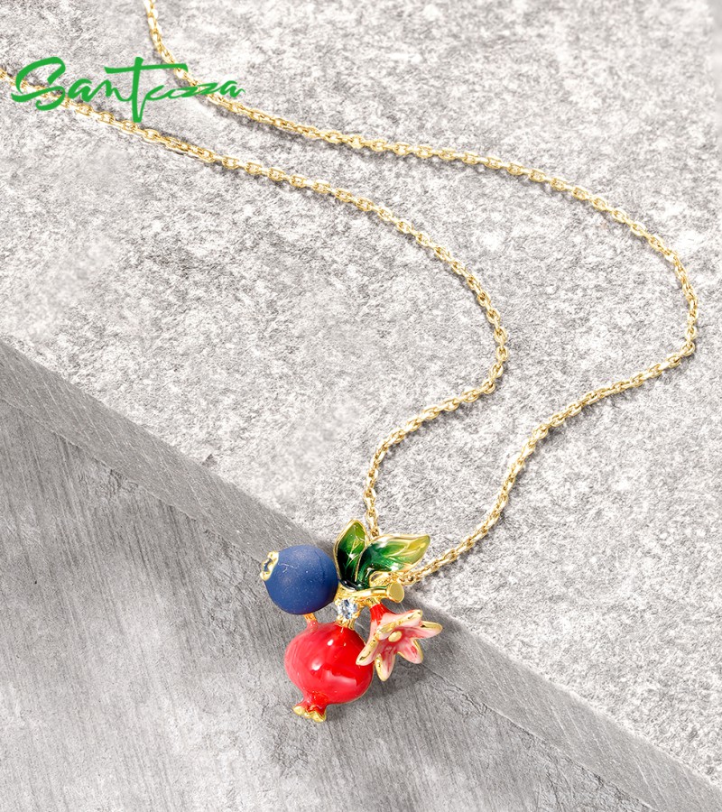 SANTUZZA 925 Sterling Silver Fruit Pendant Blueberries & Pomegranate Jewelry Enamel