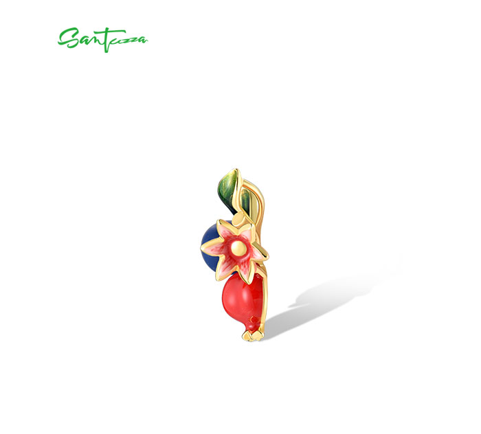 SANTUZZA 925 Sterling Silver Drop Earrings Fruits Blueberries &Pomegranate Jewelry Enamel