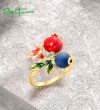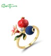 SANTUZZA 925 Sterling Silver Rings Blueberries & Pomegranate Enamel Fruits Flower Jewelry