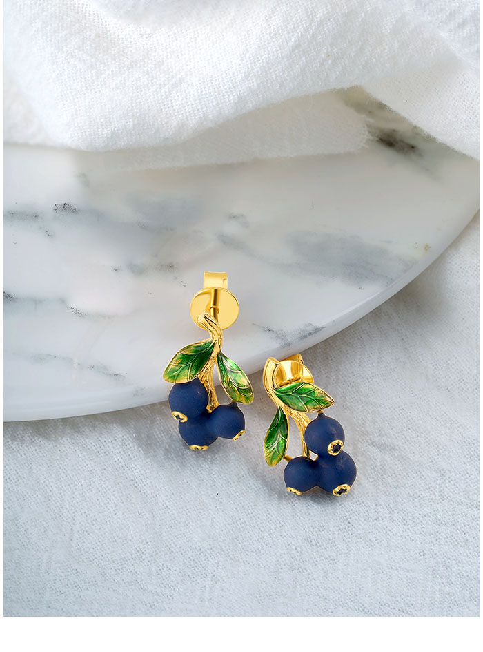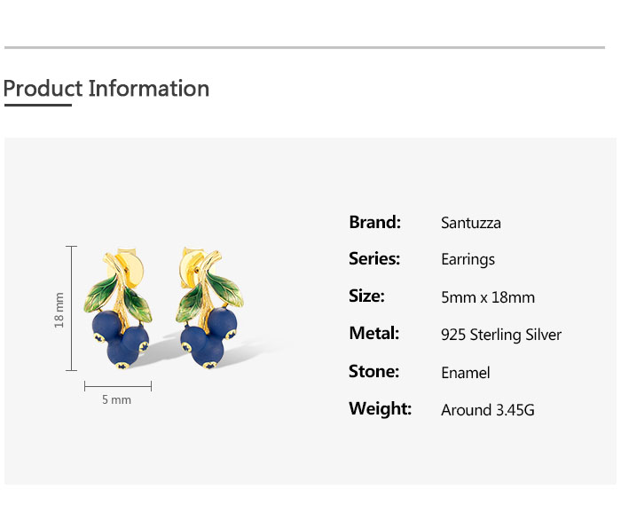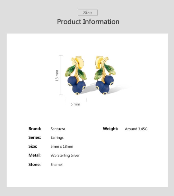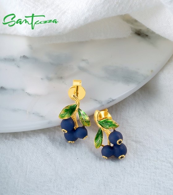 SANTUZZA 925 Sterling Silver Drop Earrings Enamel Blueberries Pomegranate Fruits Jewelry
