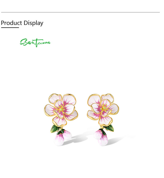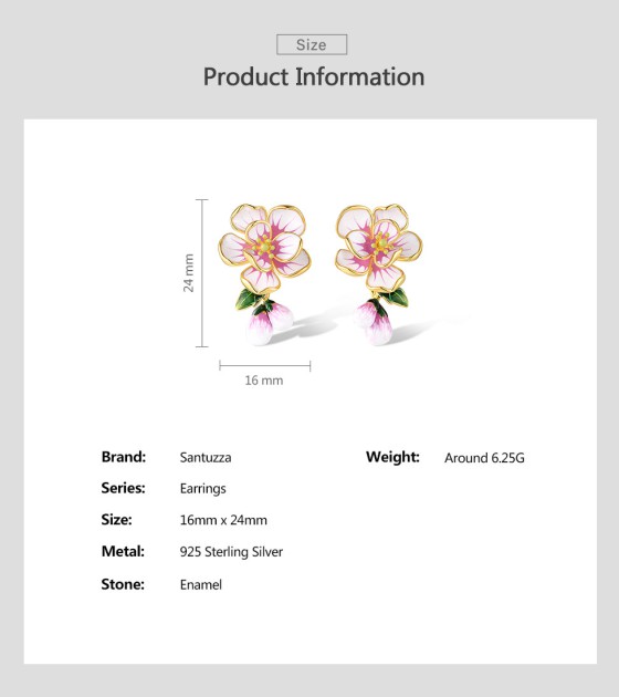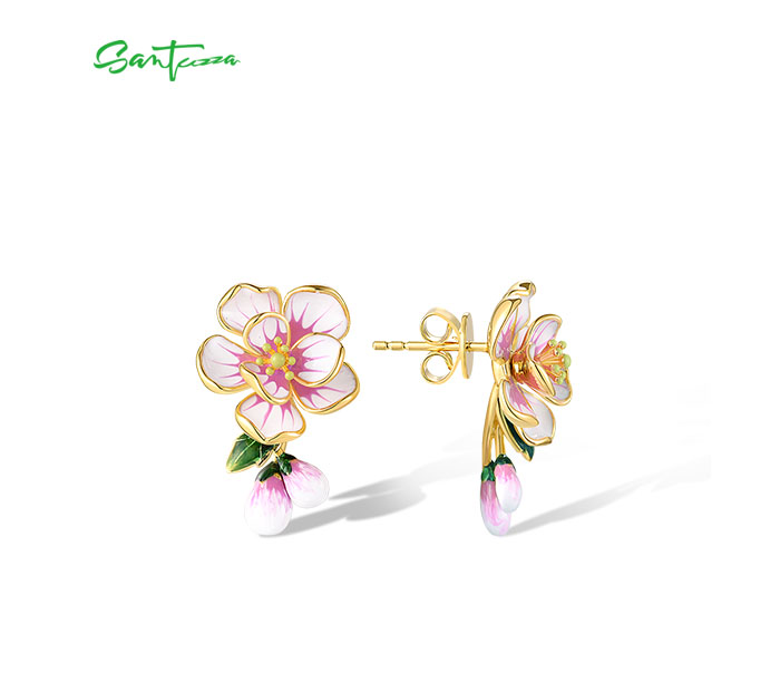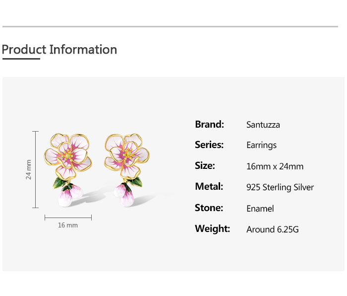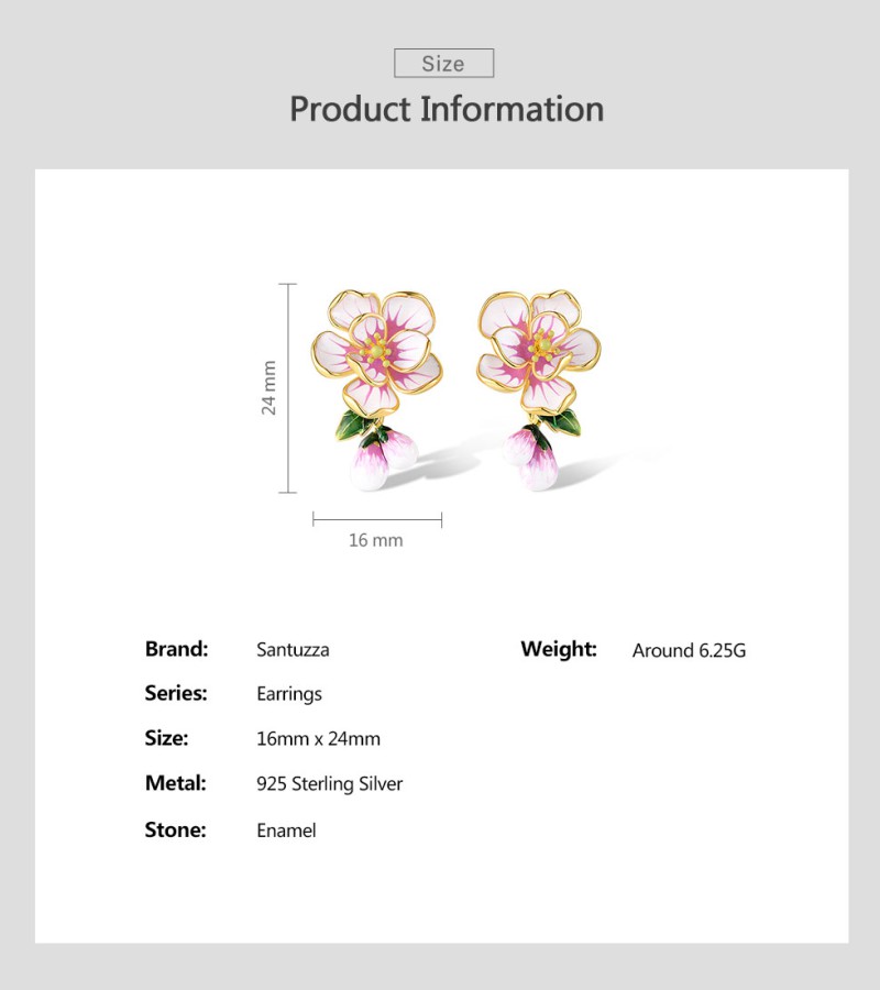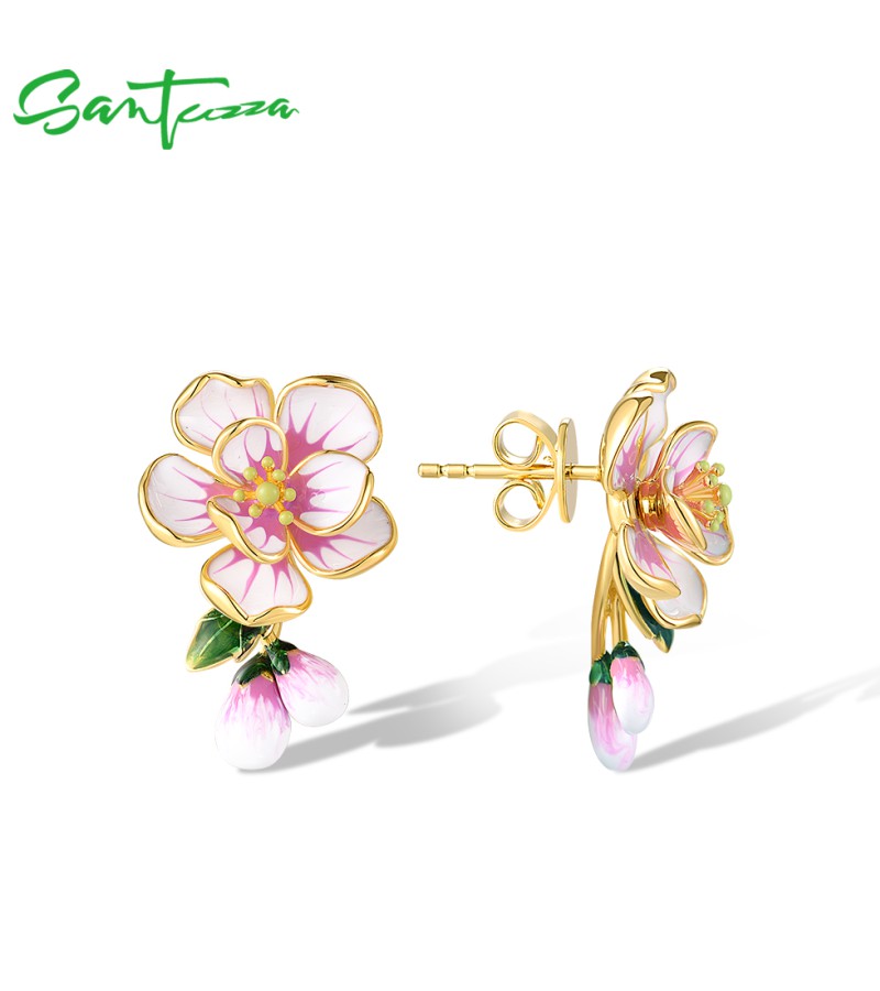 SANTUZZA 925 Sterling Silver Stud Earrings Fancy Pink Flower Drop Jewelry