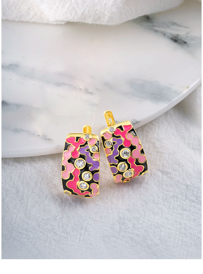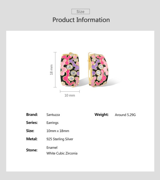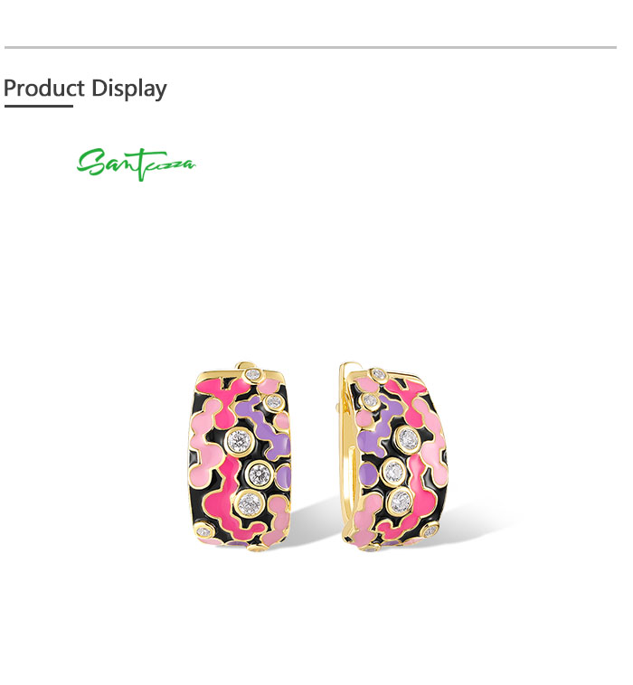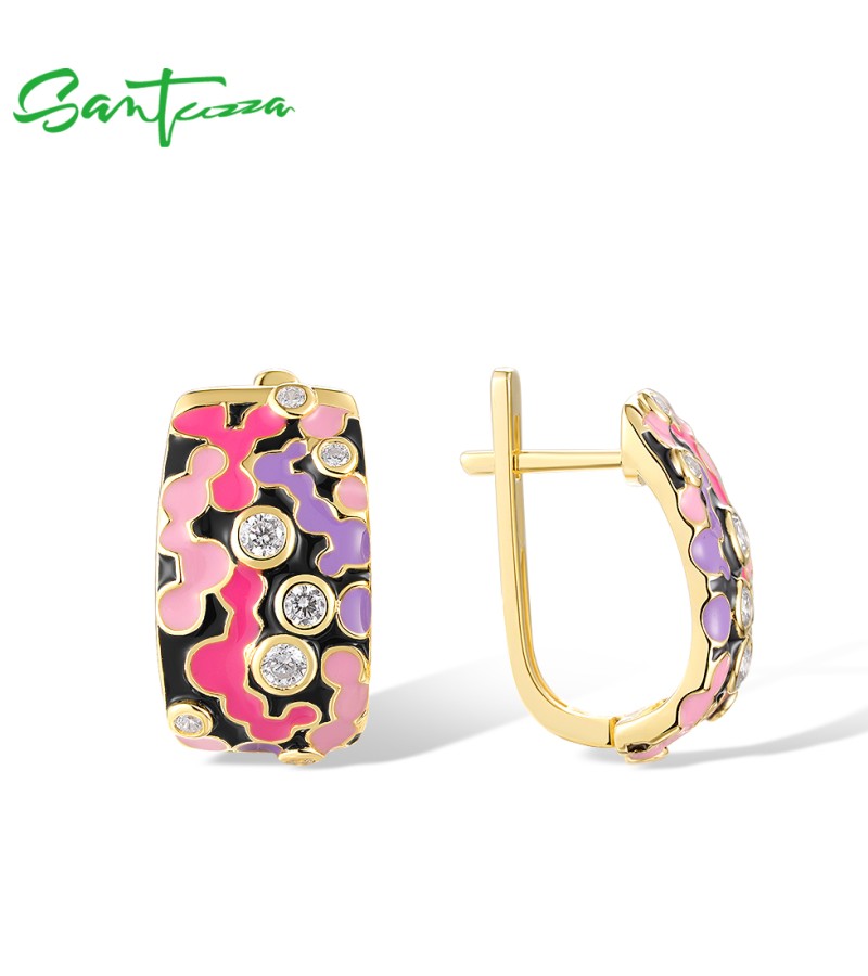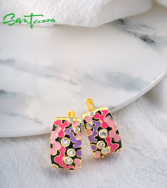 SANTUZZA 925 Sterling Silver Latch Back Earrings Enamel Mosaic Irregular Jewelry