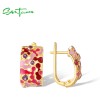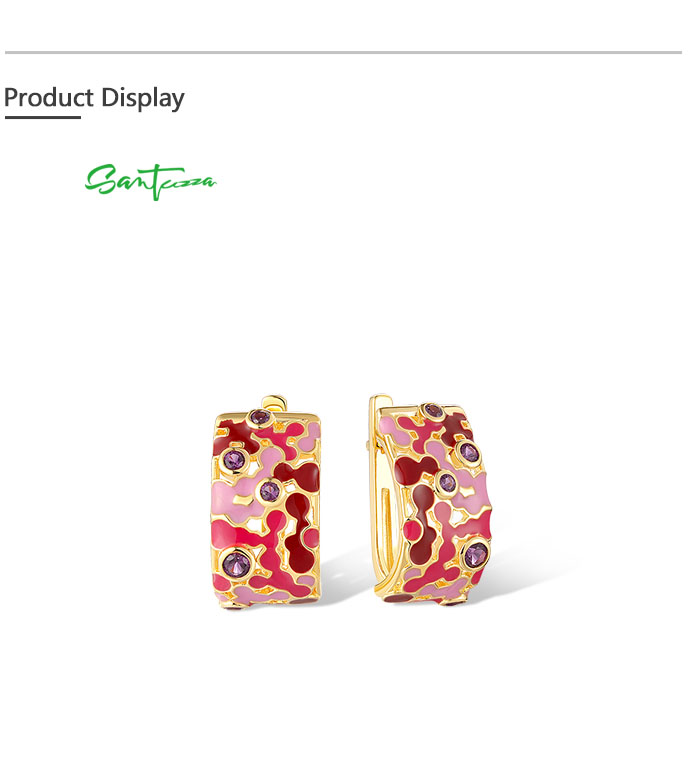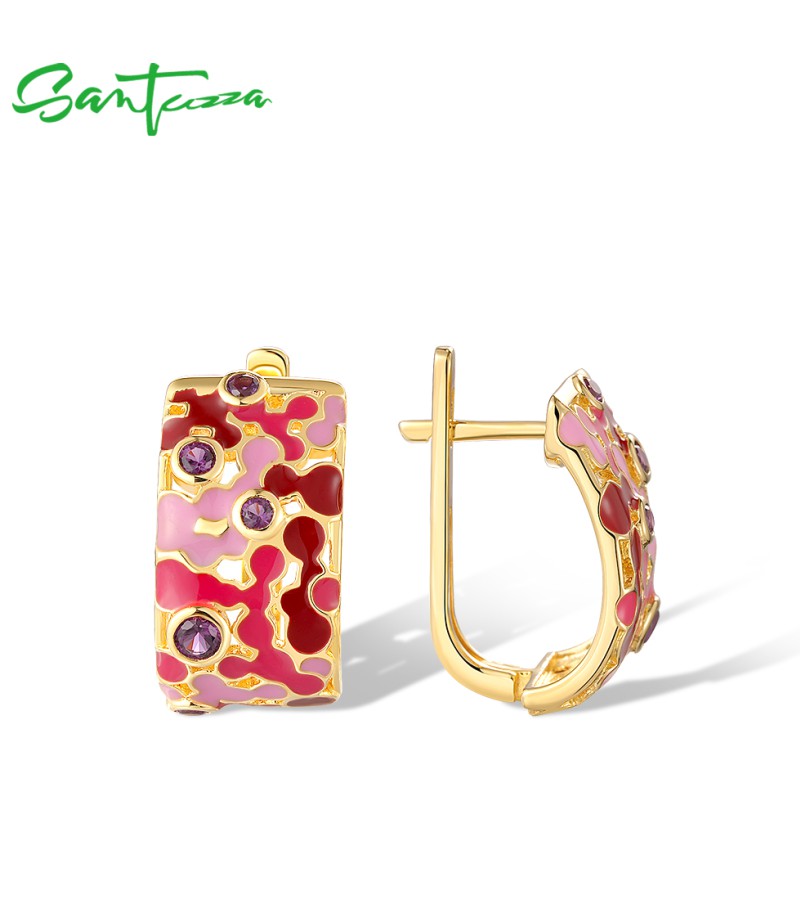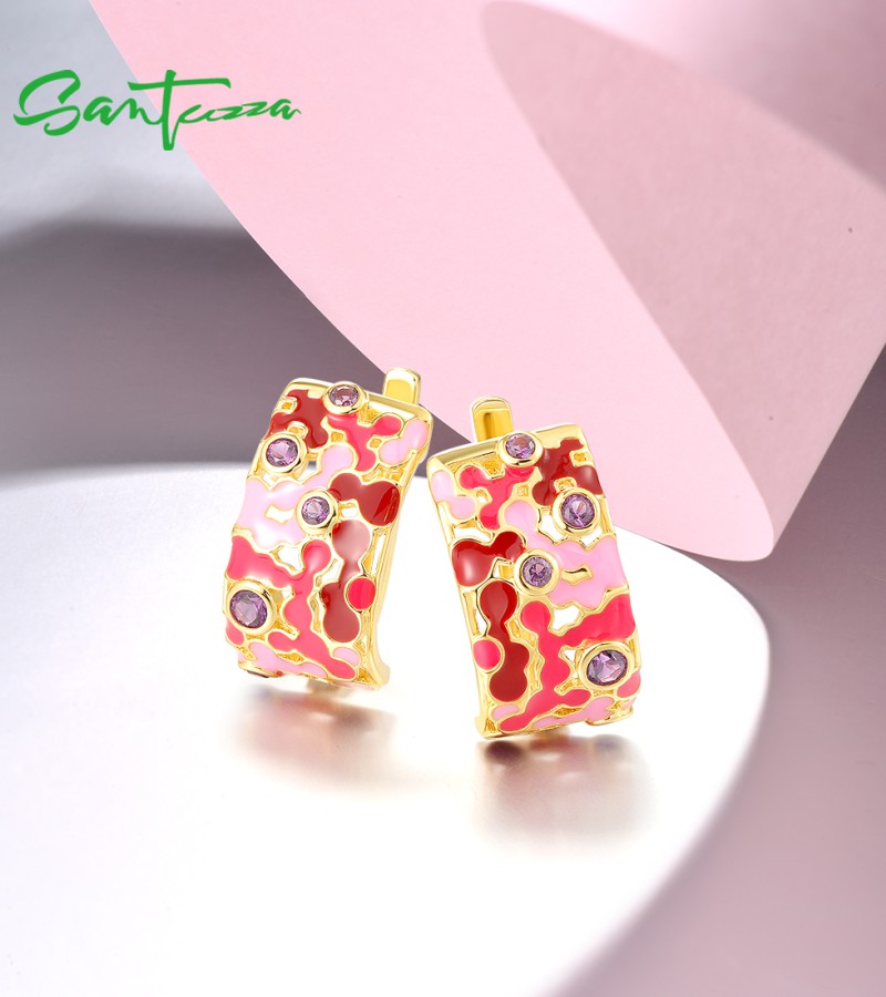 SANTUZZA 925 Sterling Silver Clip Earrings Mosaic Style Enamel Jewelry