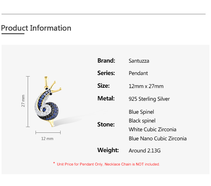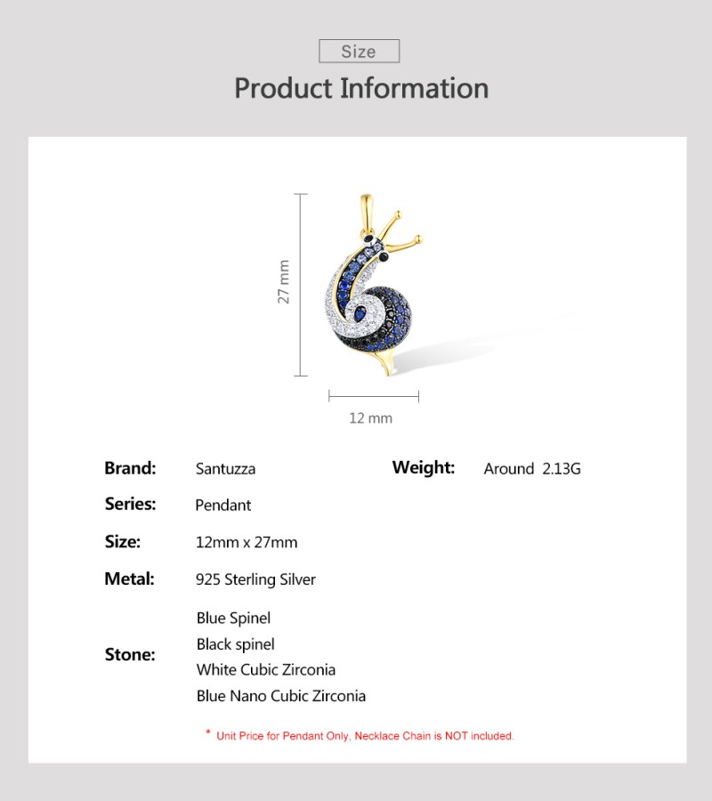 SANTUZZA 925 Sterling Silver Pendant Sparkling Blue Black Spinel White CZ Snail Fine Jewelry Sets