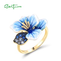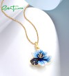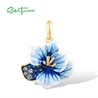 SANTUZZA 925 Sterling Silver Pendant Blue Spinel Enamel Flower Trendy Gifts Fine Jewelry